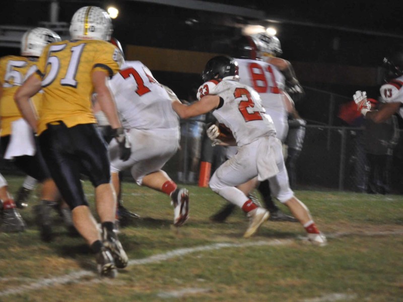It was a monster game for junior Zach Petiet. He rushed 38 times for 272 yards and a touchdown. Brandon Holub also played well in his dual threat role completing 7 of 8 passes for 95 yards and two touchdowns. Holub also rushed 13 times for 48 yards. Holub’s touchdown passes to Alstan Wolfe and Kory Kemmerer were on target and deliberate. Kemmerer finished with four catches for 81 yards.