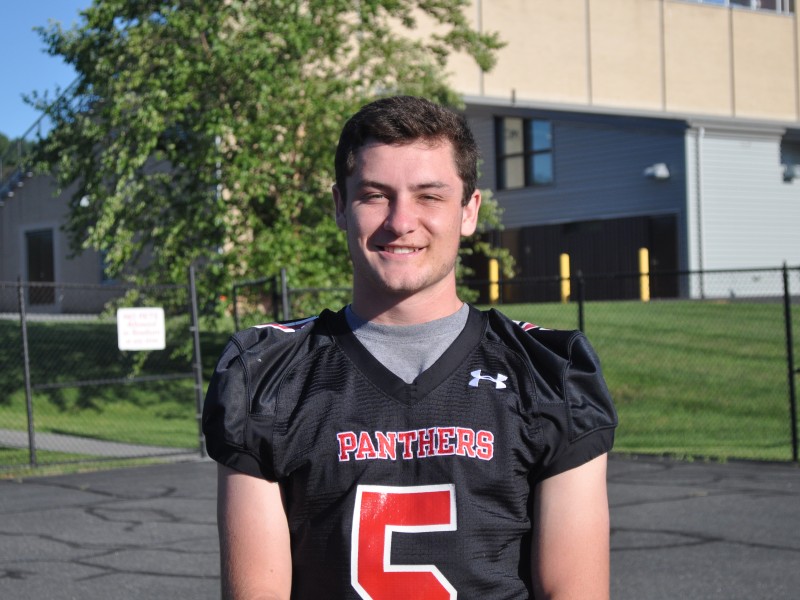 Alstan wears #5 while playing receiver and defensive back for the Panthers. He stands 5’10” and weighs 170. Offensively, this past season Alstan was credited with 2 carries gaining 12 yards and 32 receptions for 585 yards with 11 touchdowns. Alstan also returned a punt for a touchdown against Bangor this year. Defensively, he is listed as having 28 tackles and 10 assists. Six tackles were for loss. Wolfie also had 2 interceptions and 2 passes defended.