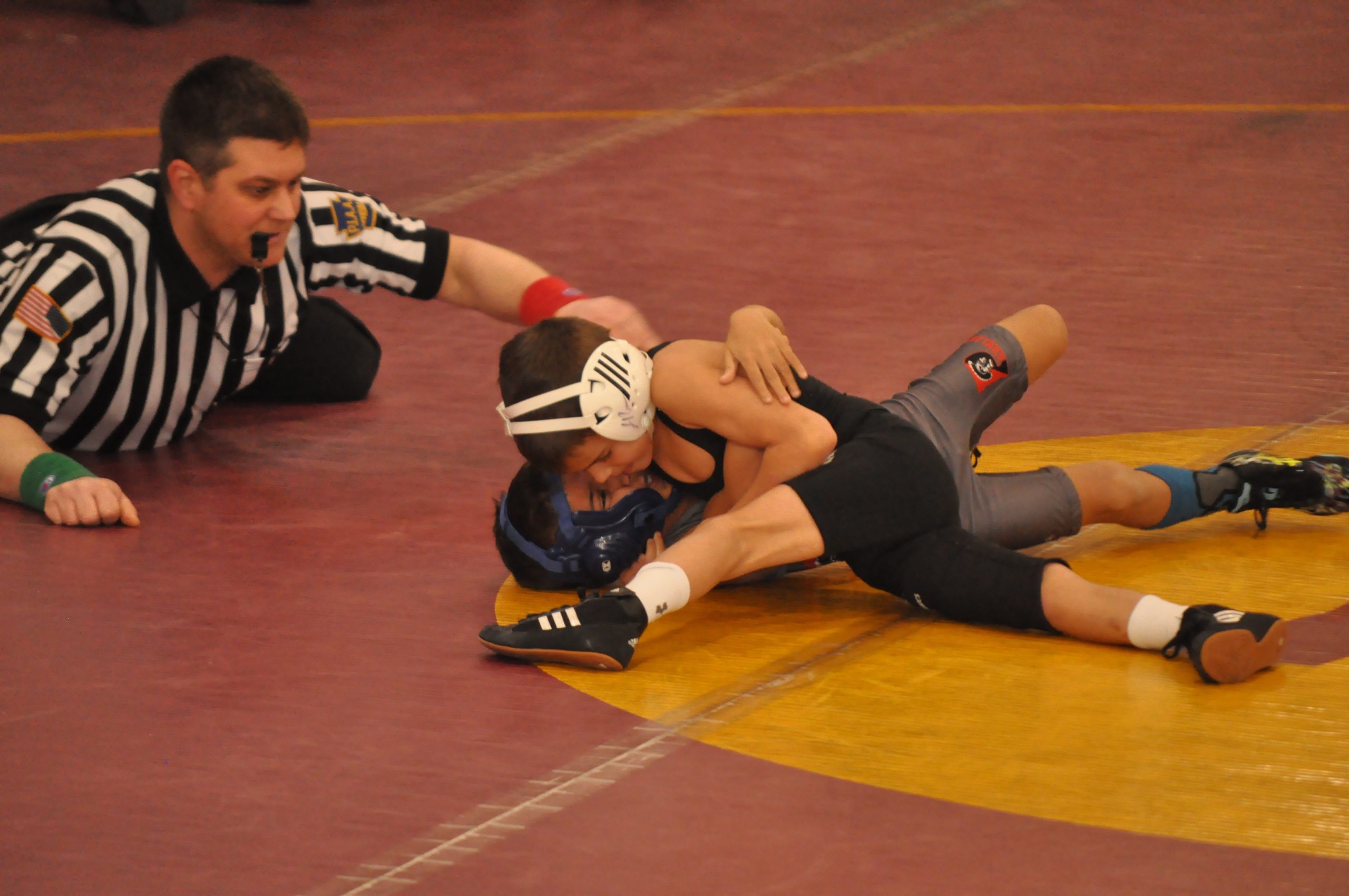 The junior high wrestling team hosted a round-robin tournament in the Middle School gym on Saturday and finished 3-1.