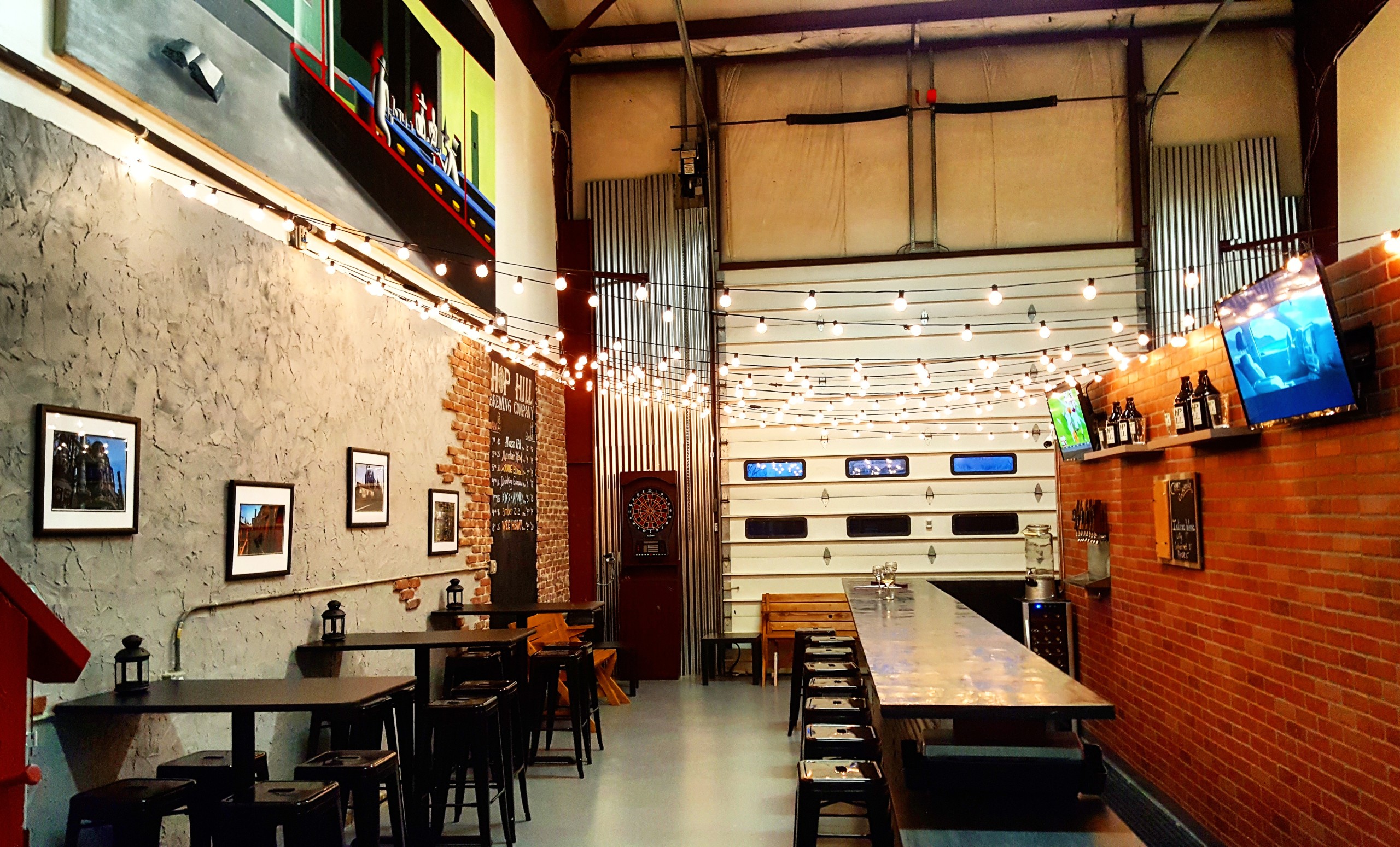 Hop Hill occupies one mammoth bay in a six-bay garage building owned by local realtor and real estate developer John Blair behind the headquarters for his Blair Custom Homes business.