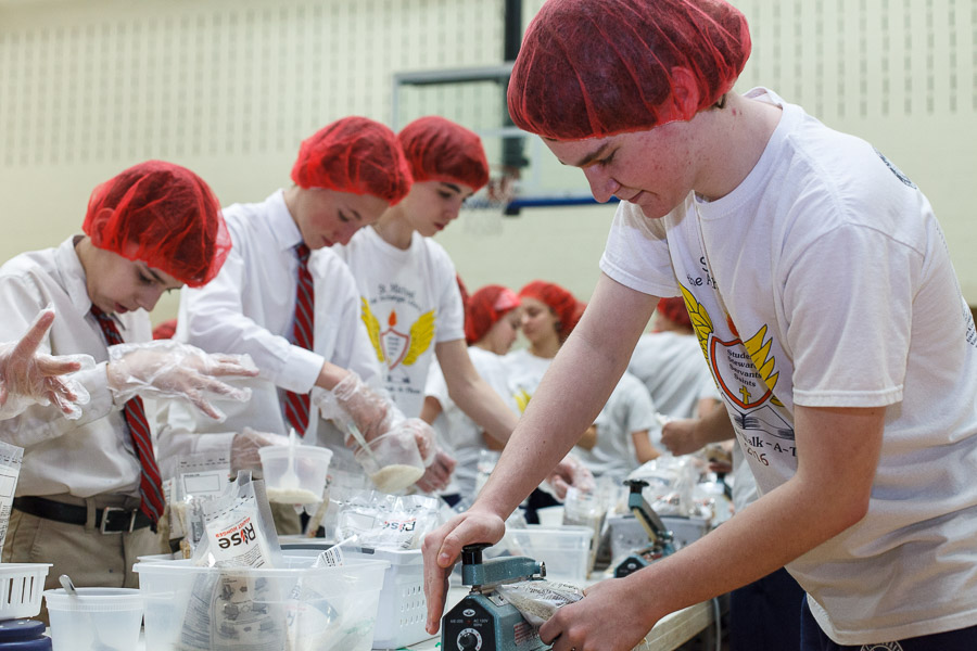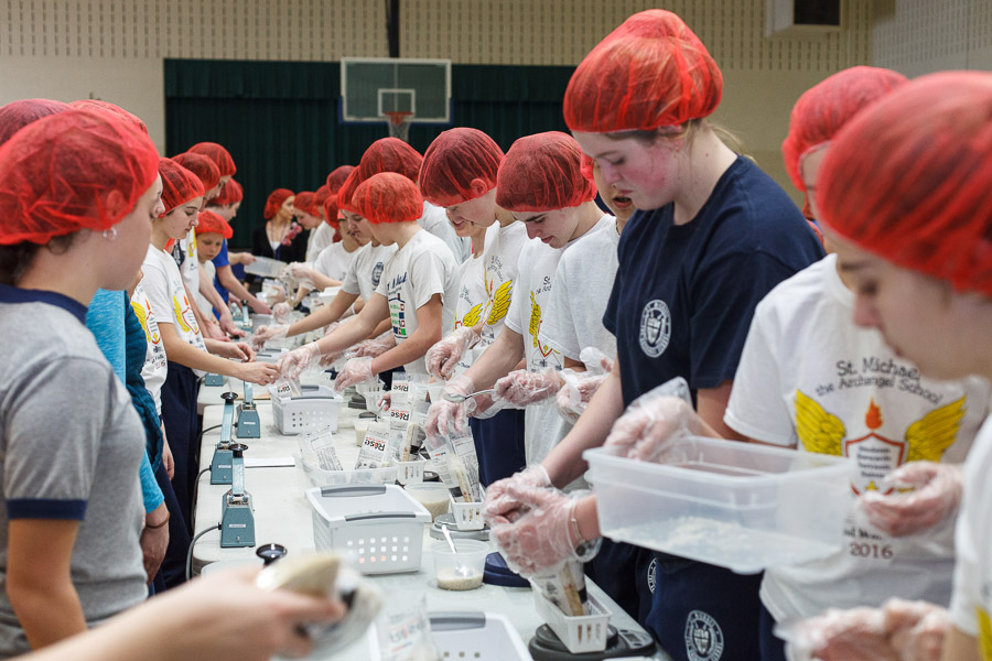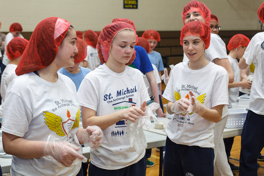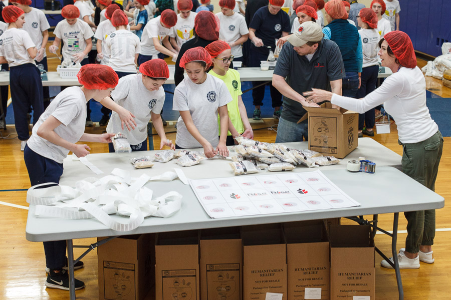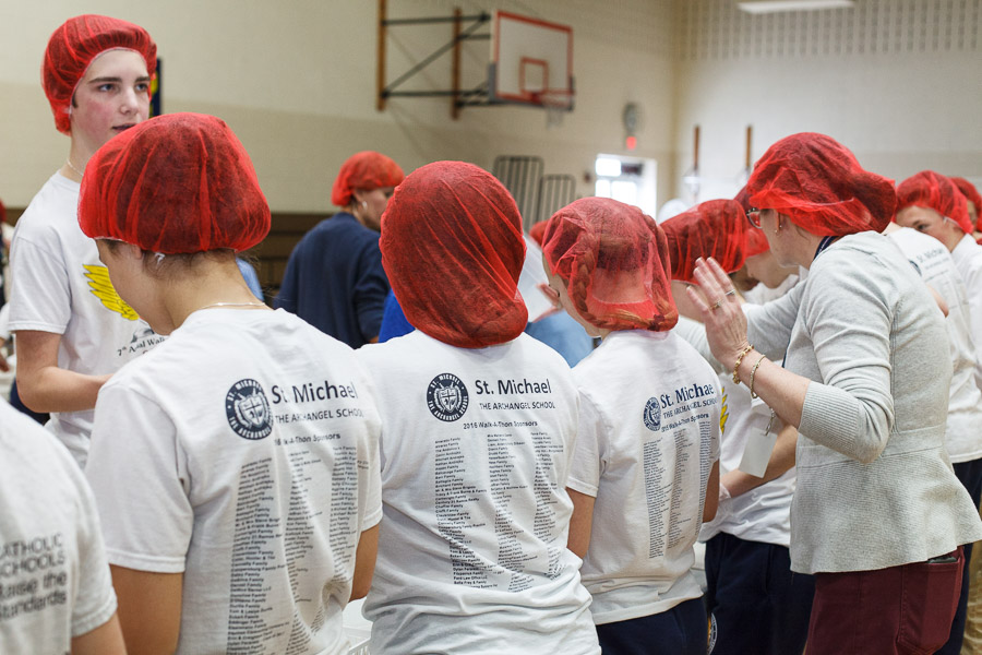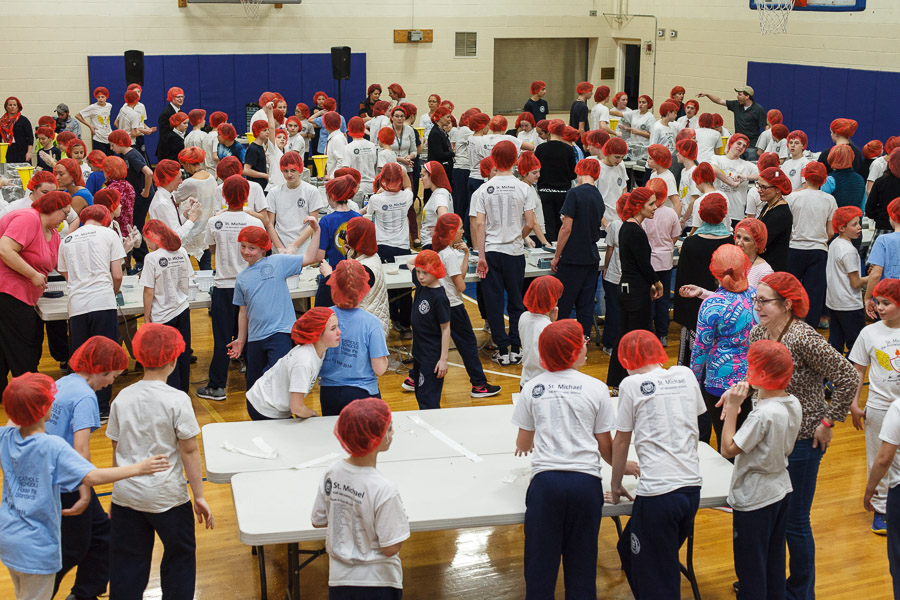 The joint effort was spearheaded by Marianne Gano, Advancement Director at St. Michael. Said Gano, “I was researching the Catholic Relief Services and the various activities they do and this looked like it would be an educational experience for our students. As part of our mission statement, ‘we aspire to model young adults who embody the principles of morality and spirituality…’ This project offers an opportunity to do both by offering our time and efforts to feed the hungry.”