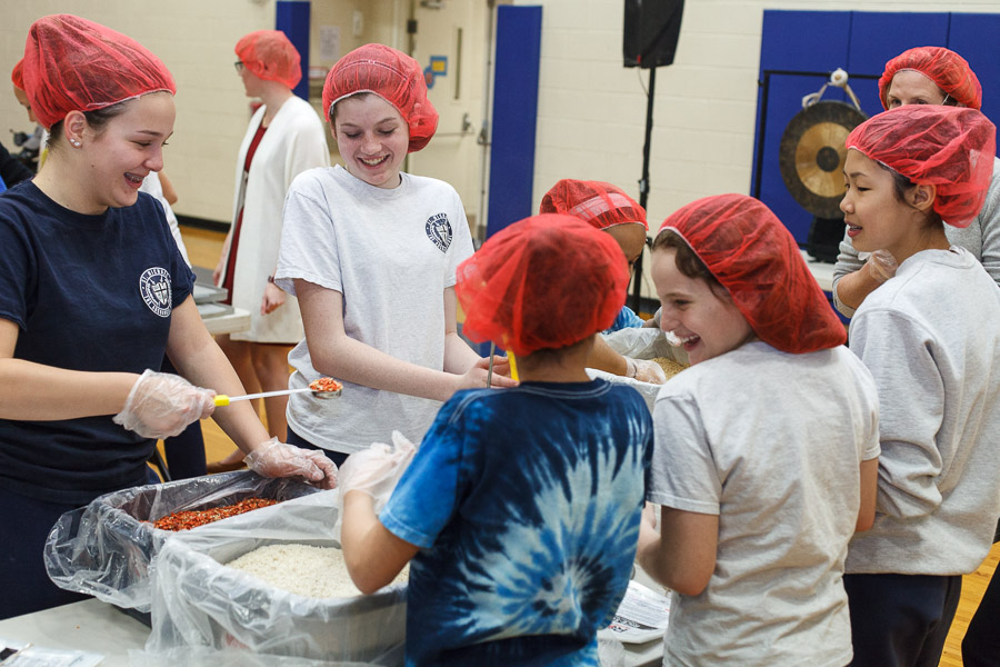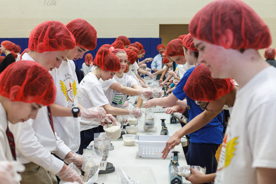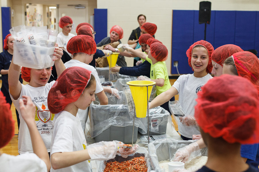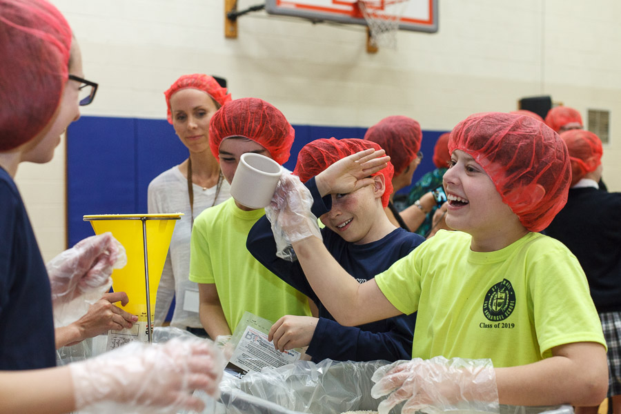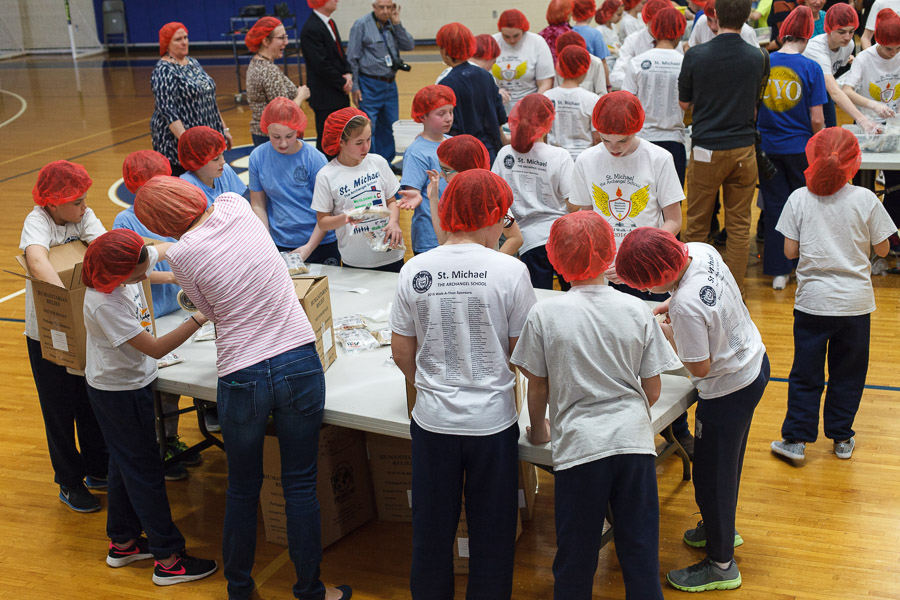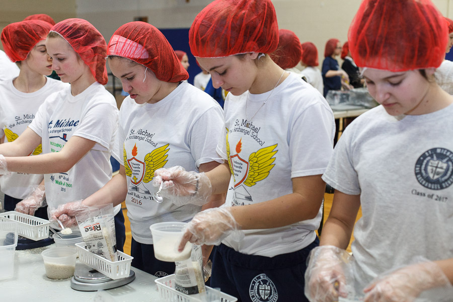 The joint effort was spearheaded by Marianne Gano, Advancement Director at St. Michael. Said Gano, “I was researching the Catholic Relief Services and the various activities they do and this looked like it would be an educational experience for our students. As part of our mission statement, ‘we aspire to model young adults who embody the principles of morality and spirituality…’ This project offers an opportunity to do both by offering our time and efforts to feed the hungry.”