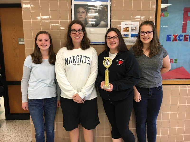 Saucon Valley High School students Emily Ackerman, Laura Gombocz, Sophia Israel and Alex Youse participated in the First Annual Husky Dog-Pound Challenge at Bloomsburg University on Tuesday, April 18. The students are members of Kim Flueso’s high school Entrepreneurship class.