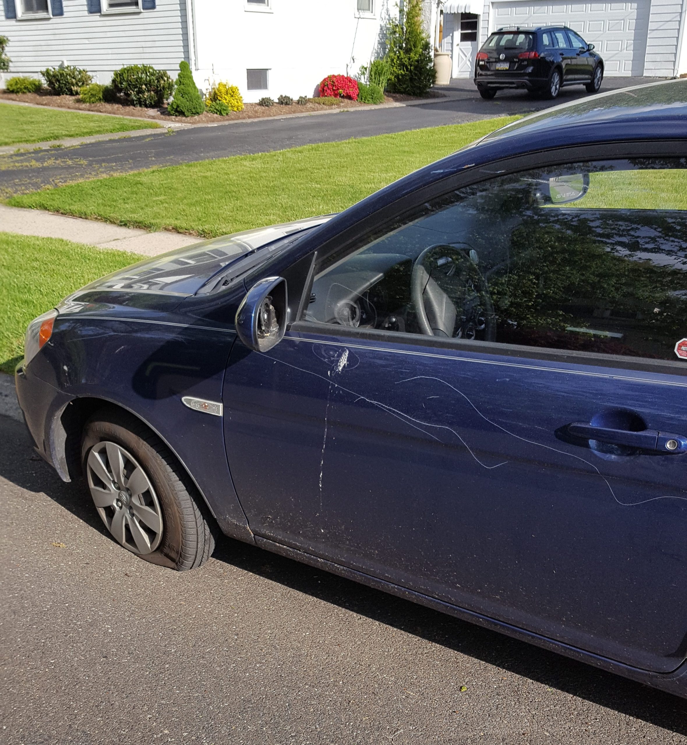 A Hellertown borough resident reported that someone vandalized her family’s car–a blue Hyundai coupe–late Monday, May 8, or early May 9, causing about $3,500 in estimated damage to it.