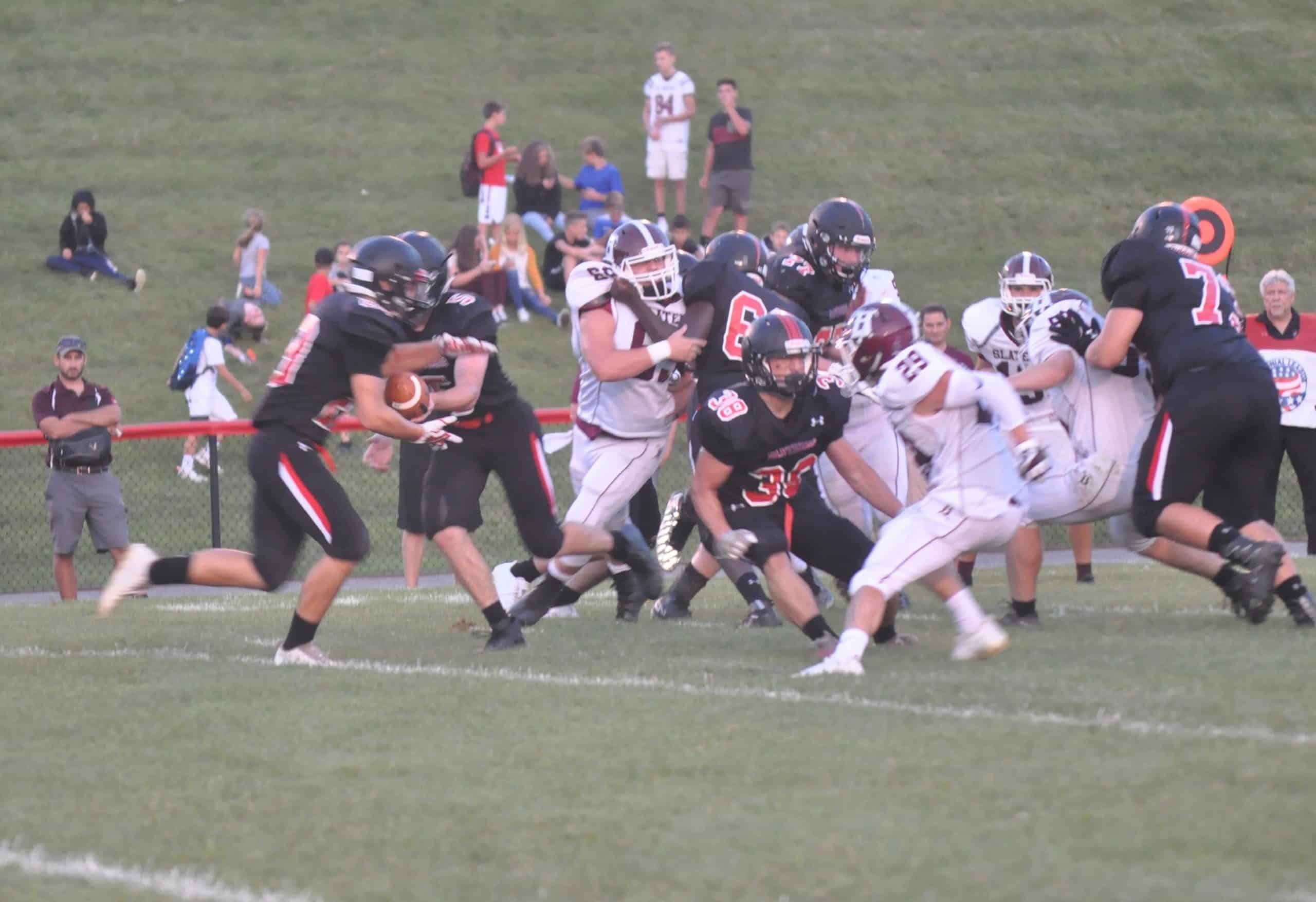 Bangor responded with a 14-play series that included Ryan Holub’s “Krunch Time!” tackle, but the drive stalled at the Saucon Valley 8-yard line when the Slaters turned the ball over on downs after a pass attempt fell incomplete in the Panther end zone. The Panthers bled the last few ticks on the first-half clock and went into the locker room looking good with a comfortable 26-7 lead.
