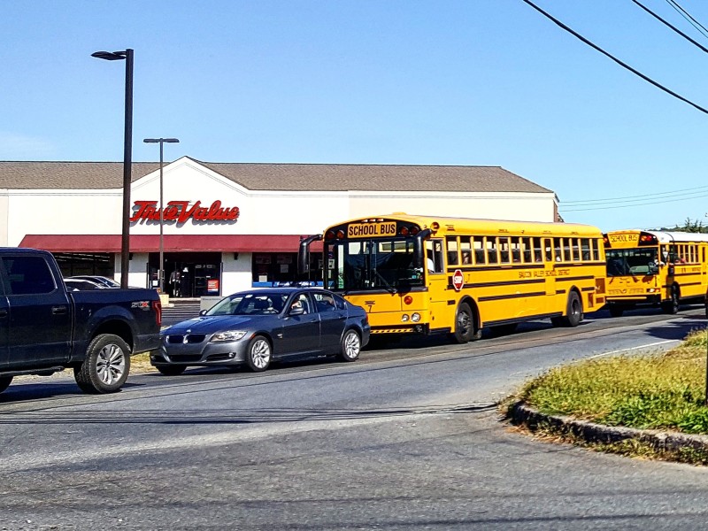 The plans hit a snag after Hellertown officials withdrew their support for the proposal, citing the fact that the nearby light at Walnut and Main streets can be used by motorists turning left (south) onto Rt. 412. It was stated that buses traveling to and from the Saucon Valley School District campus could use that intersection, although a photo taken Tuesday afternoon at the end of the school day shows several buses lined up, waiting to turn at Polk Valley Road and Main Street.