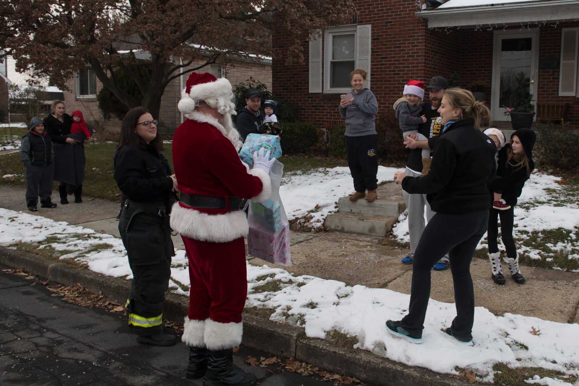 And spread cheer he did. It’s pretty hard not to smile when you Santa pulling up in front of your house on a bright red fire truck, candy canes in hand.