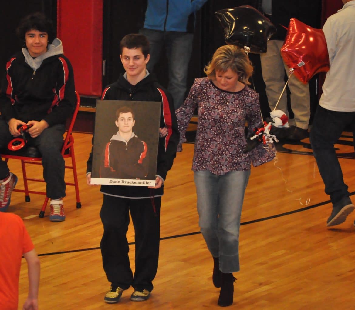 2018 SENIOR NIGHT: Before the match, the Saucon Valley Wrestling Club honored this year’s seniors. Dane Druckenmiller, Jason Jones, Angelo Mahaffey and Kyle Malone, along with their parents, took center-stage and were recognized for their commitment to the Saucon Valley wrestling program. They will be missed!