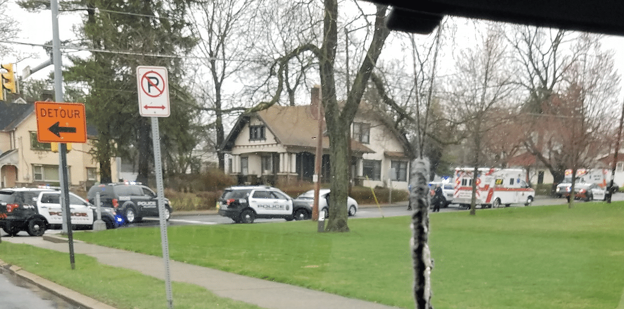The vehicle stop next to the cemetery drew the attention of passing motorists, as about 10 police cars and two ambulances were present at it; a fact confirmed by another eyewitness photo taken on Main Street.