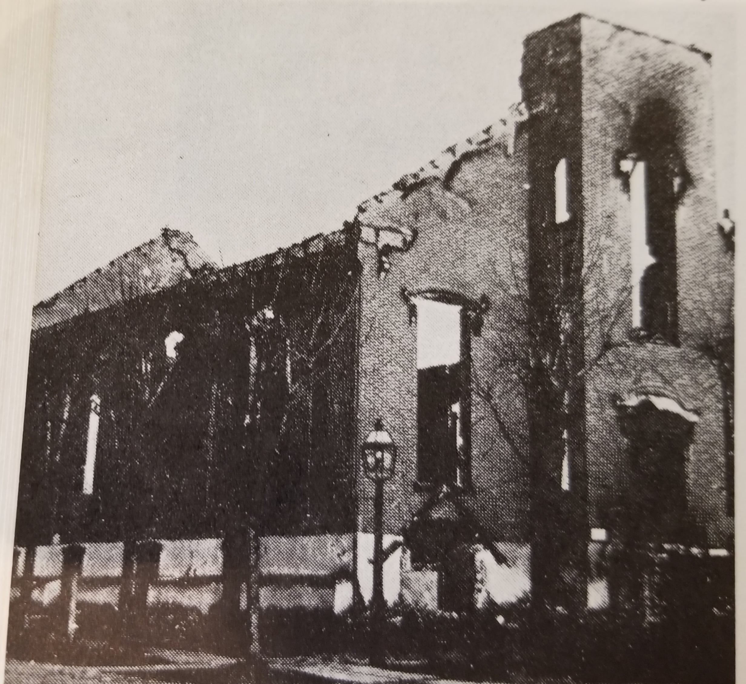 The flames, as in the Christ Union Church, shot upward and made the sky a deep colored crimson.
