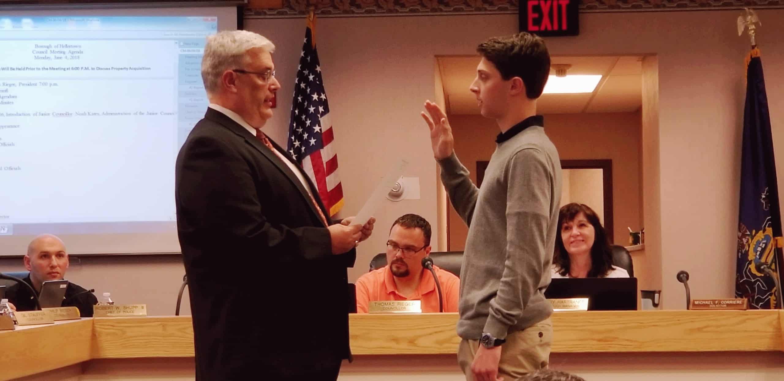 For the first time in several years Hellertown Borough Council has a junior council member. High school student Noah Kates, of Springtown, Bucks County, was sworn in Monday.