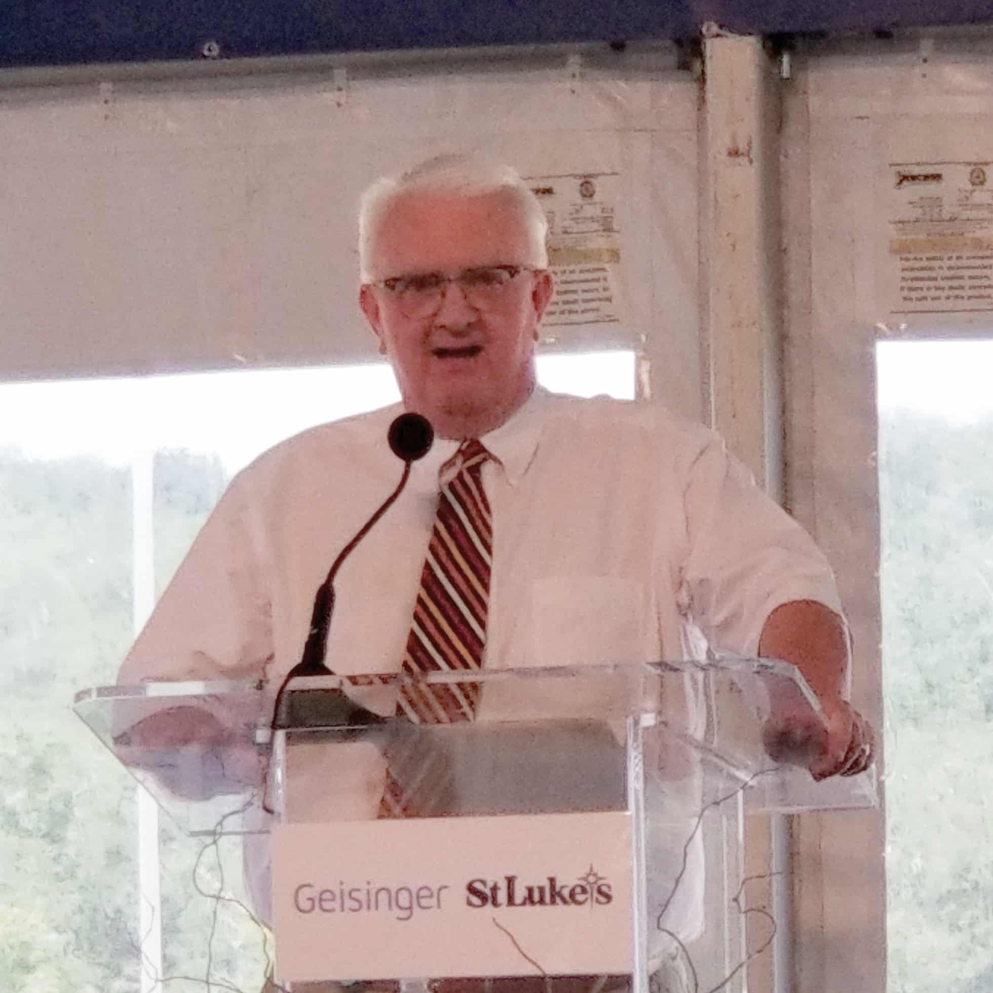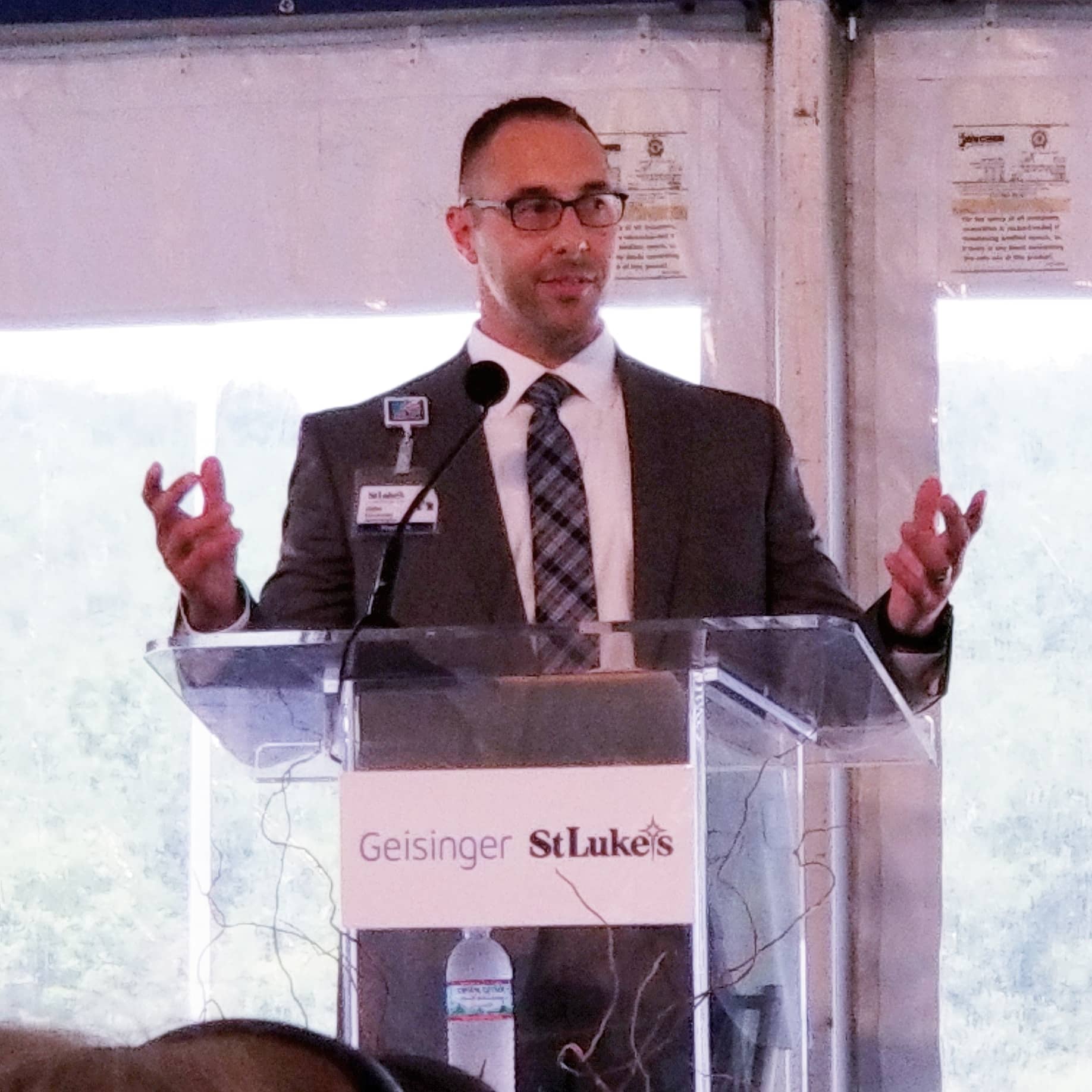 St. Luke’s President & CEO Richard A. Anderson was not present for the ceremony, but SLUHN Senior Vice President, Network Development & Strategy Officer Robert Martin spoke effusively of the partnership with Geisinger, which he called “the perfect marriage.”