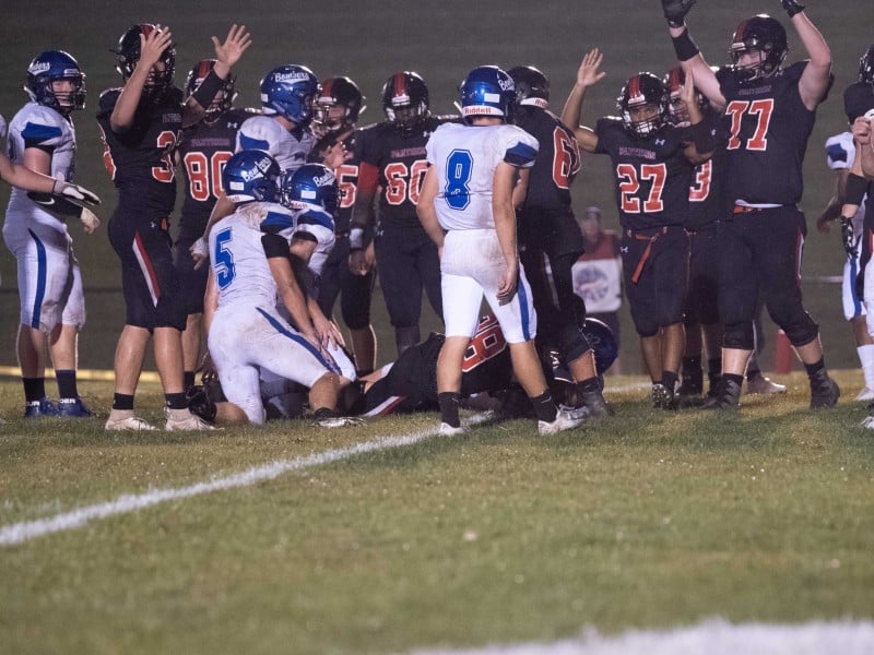 Palmerton took the following Panther kickoff and marched to the Panther 45-yardline where they faced a 4th & 7.  Saucon’s Evan Deily and Patrick Morrissey brought the pressure but the Bomber quarterback managed to get his pass away.  However, Reily Hudak from his safety position was able to bat the ball harmlessly to the ground.  The Panthers regained possession and chewed the clock while pushing deep into Bomber territory where they turned it over on downs.  Palmerton took over at their own 18-yardline and managed to secure one first down before the game ended with a Jared Harka sack.