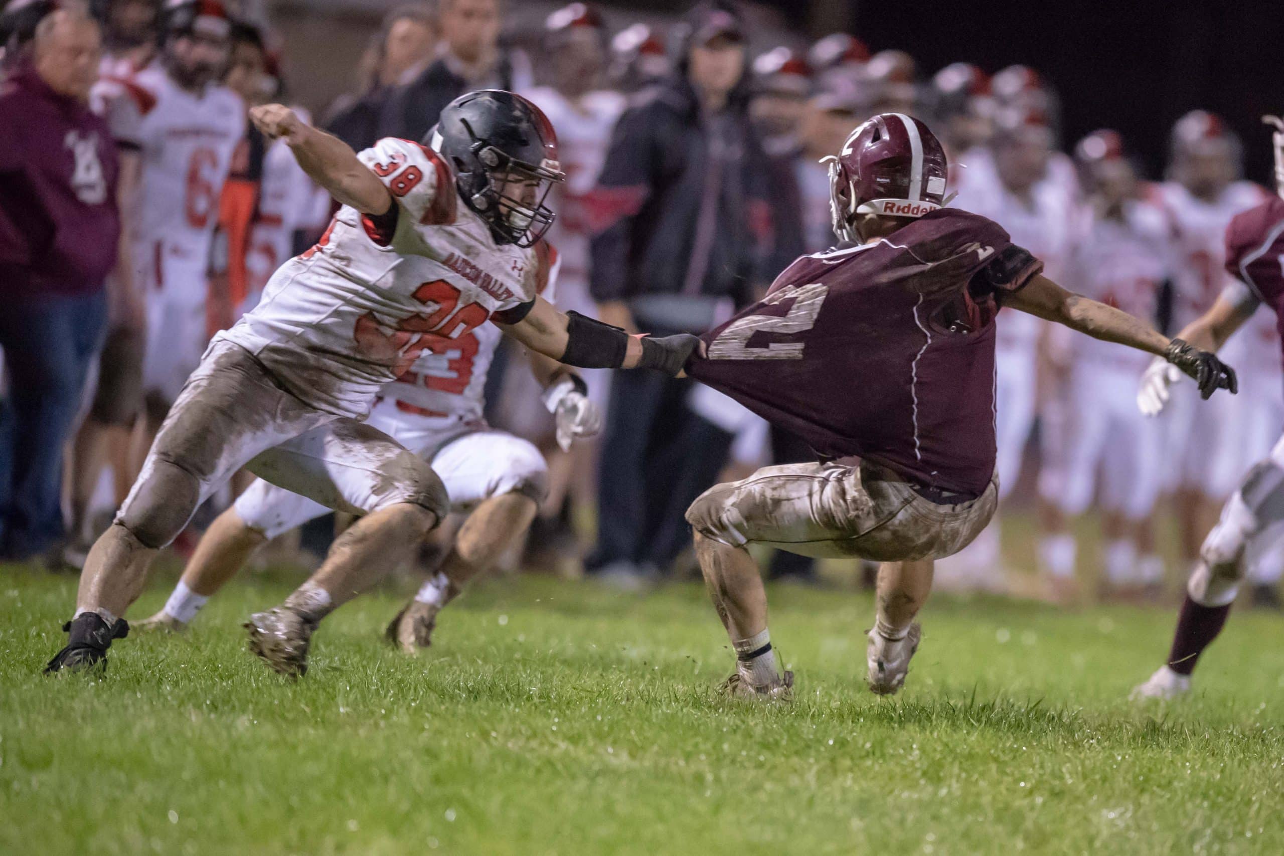 The Panthers started the 2nd-Half at their own 24-yardine in the sloppy part of the field and the offense sputtered going three-and-out. Patrick Morrissey nailed a punt that was left to roll down the Slater 28-yardline. Bangor put together a ten-play drive that ended with Garrett DeBoer finding room around the Panthers left end for 19-yard TD. The Slaters two-point conversion was no good and with 6:13 left to play in the 3rd Quarter the scoreboard read 28-12 in favor of Saucon Valley.