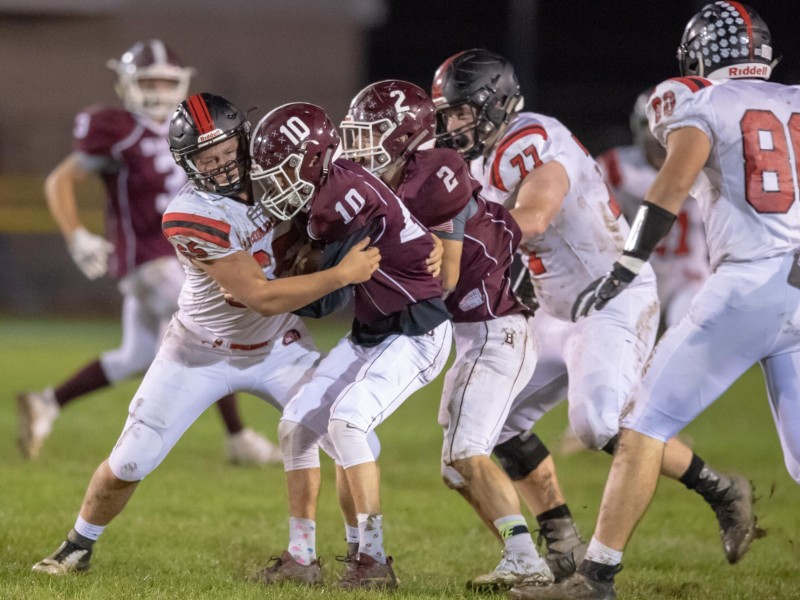 The Panthers started the 2nd-Half at their own 24-yardine in the sloppy part of the field and the offense sputtered going three-and-out. Patrick Morrissey nailed a punt that was left to roll down the Slater 28-yardline. Bangor put together a ten-play drive that ended with Garrett DeBoer finding room around the Panthers left end for 19-yard TD. The Slaters two-point conversion was no good and with 6:13 left to play in the 3rd Quarter the scoreboard read 28-12 in favor of Saucon Valley.