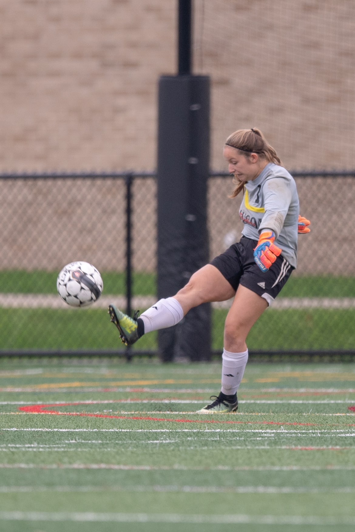 The Panthers came out after the half on fire. After taking possession from the Lady Pates and moving to the attack, Appoline Neveu let loose a cannon of a shot that hit sharply off the center of the crossbar. The Panthers’ Lauren Giles was in the box and jumped to hit a header. Giles was able to redirect the ball, but it deflected wide toward a crashing Jorryn Kyra who was able to body the ball into the back of the net. Less than one minute into the 2nd half, the Panthers reclaimed the lead and made the score 2-1.