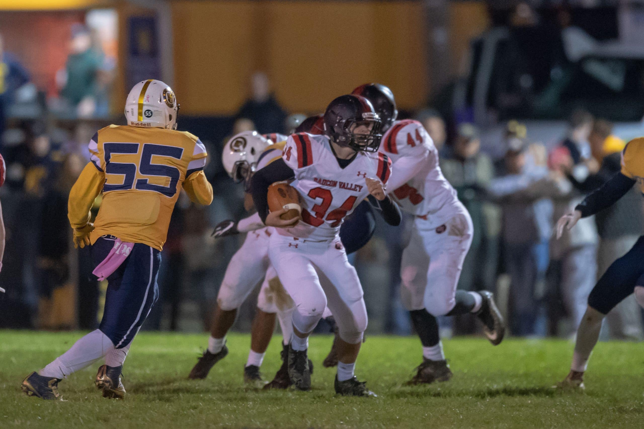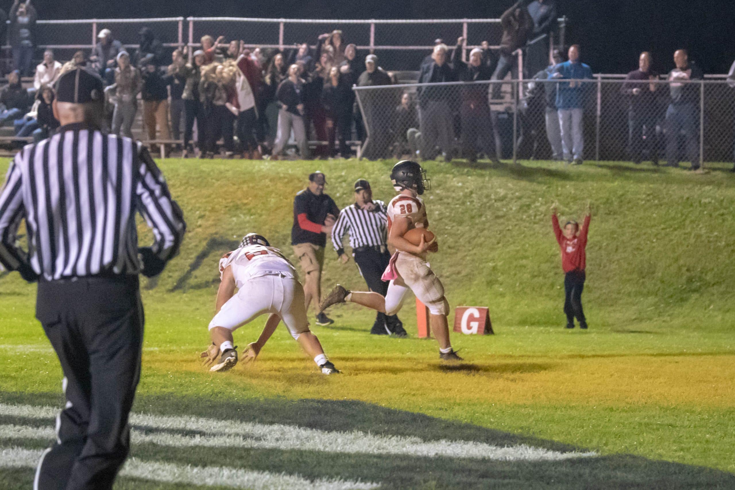 After almost 1,000 yards in total offense, fifty-four 1st downs and ninety-three total points, the game ended in dramatic fashion with the scoreboard reading 49-44 in favor of the Crusaders.  Nonetheless, it was an action packed and high scoring affair.