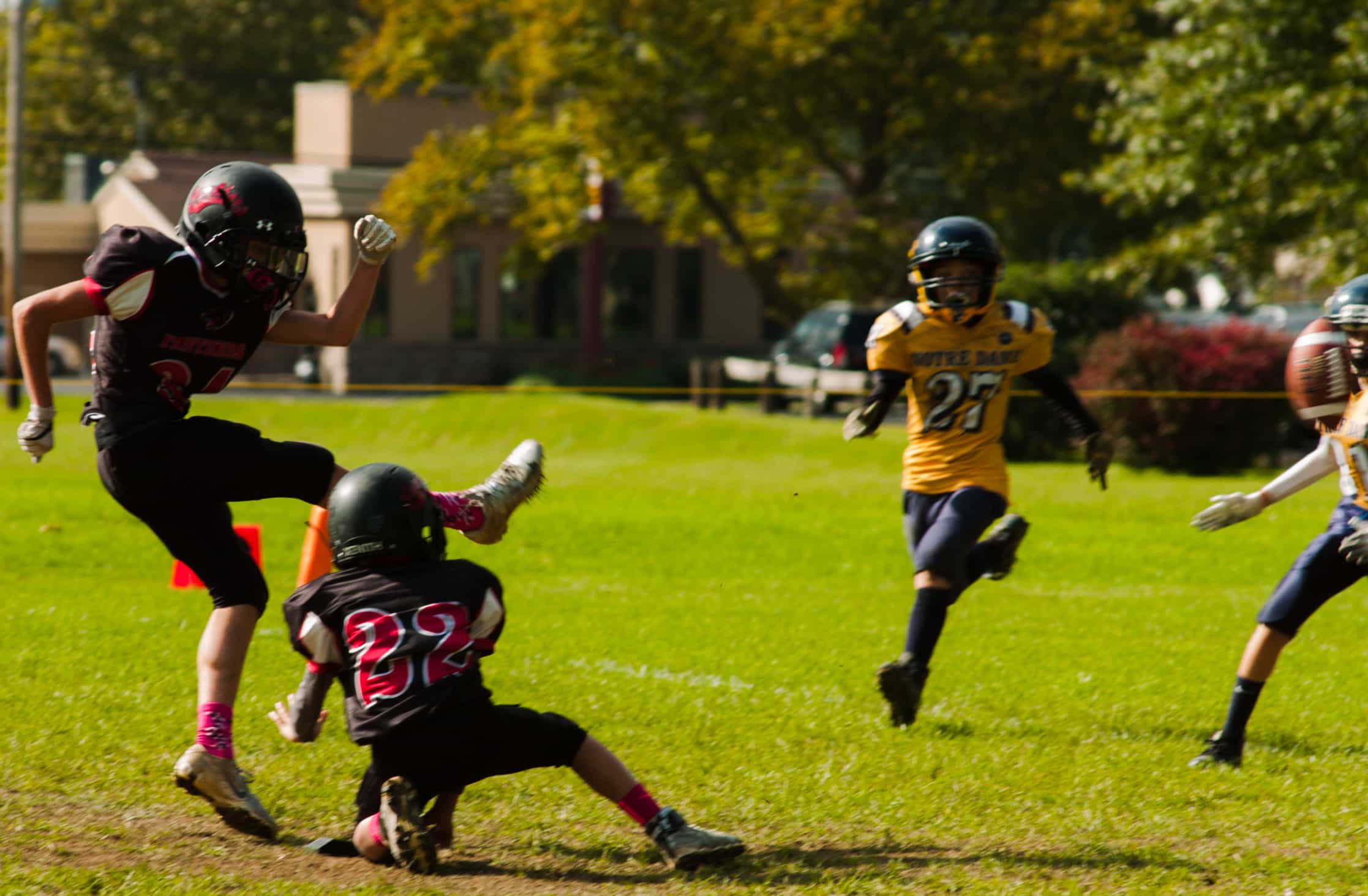The expectations were high for this undefeated squad heading into this matchup with Notre Dame, and they certainly lived up to them. The Panthers did get off to a slow start but began to show their championship potential as they started to build momentum midway through the first quarter. The defense created two turnovers, both fumble recoveries, one of which led to a short Constantine Donahue rushing touchdown. A few plays later he struck again on a long punt return for a touchdown and the Panthers took a two-score lead. Heading into the second quarter the aggressive and opportunistic defense created another turnover on an interception by Jack Robertson, and continued to stymie Norte Dame’s Young Crusaders offense as they went into halftime with a 13-0 lead. The third quarter saw more of the same strong defense force two more turnovers, a fumble recovery by Andrew Gilbert and an interception by Peter Albano, while on offense Constantine Donahue added another 36-yard rushing touchdown to boost the lead. Landon Beckowski added a 49-yard rushing score and the defense held on to the shutout to cement the Panther 29-0 victory. Statistically the defensive leaders were Landon Beckowski with six tackles, a tackle for loss and a sack, followed closely by Nathaniel Snyder who had six tackles. Andrew Gilbert chipped in three tackles and the fumble recovery. Offensively, Constantine Donahue totaled 73 yards and 2 scores and Landon Beckowski had 64 yards and one score. All in all the team played very well in all three phases of the game: the offense with three touchdowns, the defense with several sacks and takeaways, plus a special teams touchdown. All of that combined contributed to a 29-0 victory for the Panthers. In my first ever player interview, I asked Constantine Donahue about fielding a bouncing punt in traffic, and he said “whenever I can get the ball in my hands, I take the opportunity to score.” You certainly do. Coach Schneider said “the team continues to grow as a team and a family. If someone makes a mistake, the guys pick him up.” I must say I like his coaching style. Coach Brown said “it was a great team effort” that gave the 120s a “confidence boost.” He also cautioned, however, that “the games get tougher every week.”