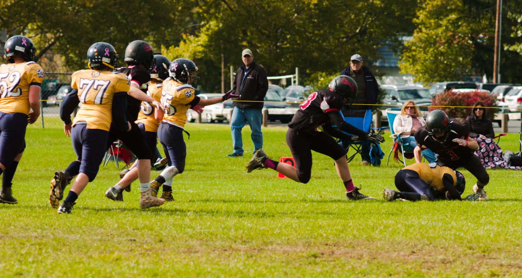 Since there was no scoring, there was also no playoff game for the rookie flag division Oct. 20. That left the three other divisions eligible for them. Two of the three remaining Panther divisions qualified, with the third one–the 100s–just missing out by way of a tiebreaker. The games took place at Southern Lehigh on a brisk fall morning.