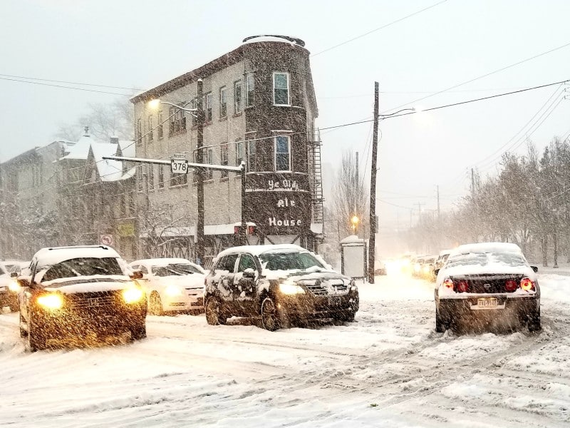 With temperatures hovering in the upper 20s, a layer of compacted snow that had fallen on un-pretreated roads became a sheet ice, giving cars and even 4-wheel drive vehicles little traction, especially on hills and slopes.
