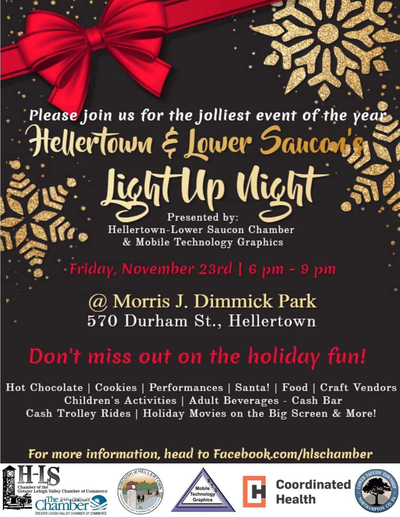 For more information and updates about everything that is planned, follow the Hellertown Light Up Night Facebook event created by the chamber.