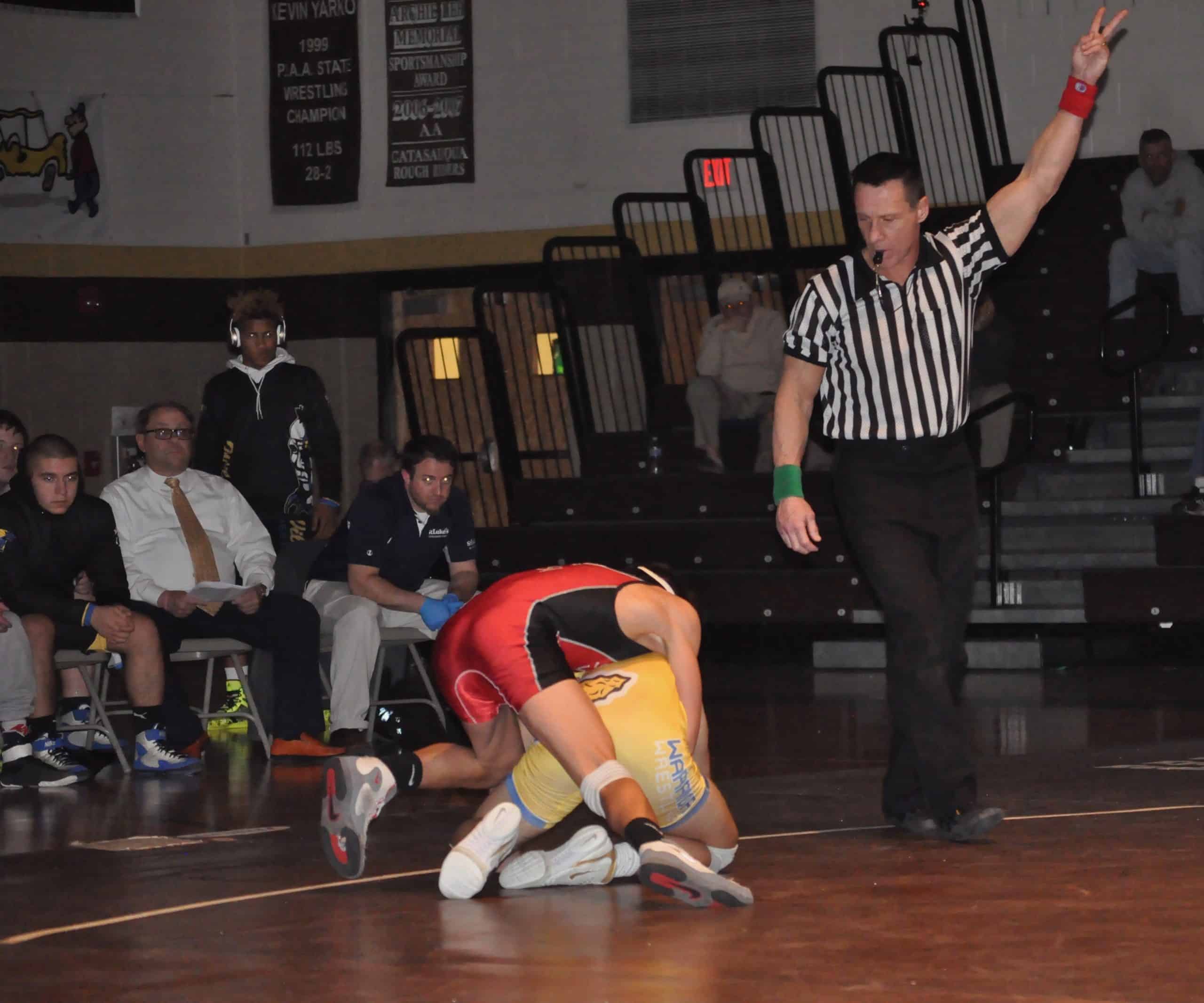 Saucon Valley also received bonus points from the efforts of Josh Jones (132), Ty Csencsits (152) and Matt Arciuolo (160). Jones recorded a 16-0 tech-fall, while Csencsits and Arciuolo both produced major-decisions. Csencsits’ victory reclaimed the Panther lead at 21-18 against the Warriors.