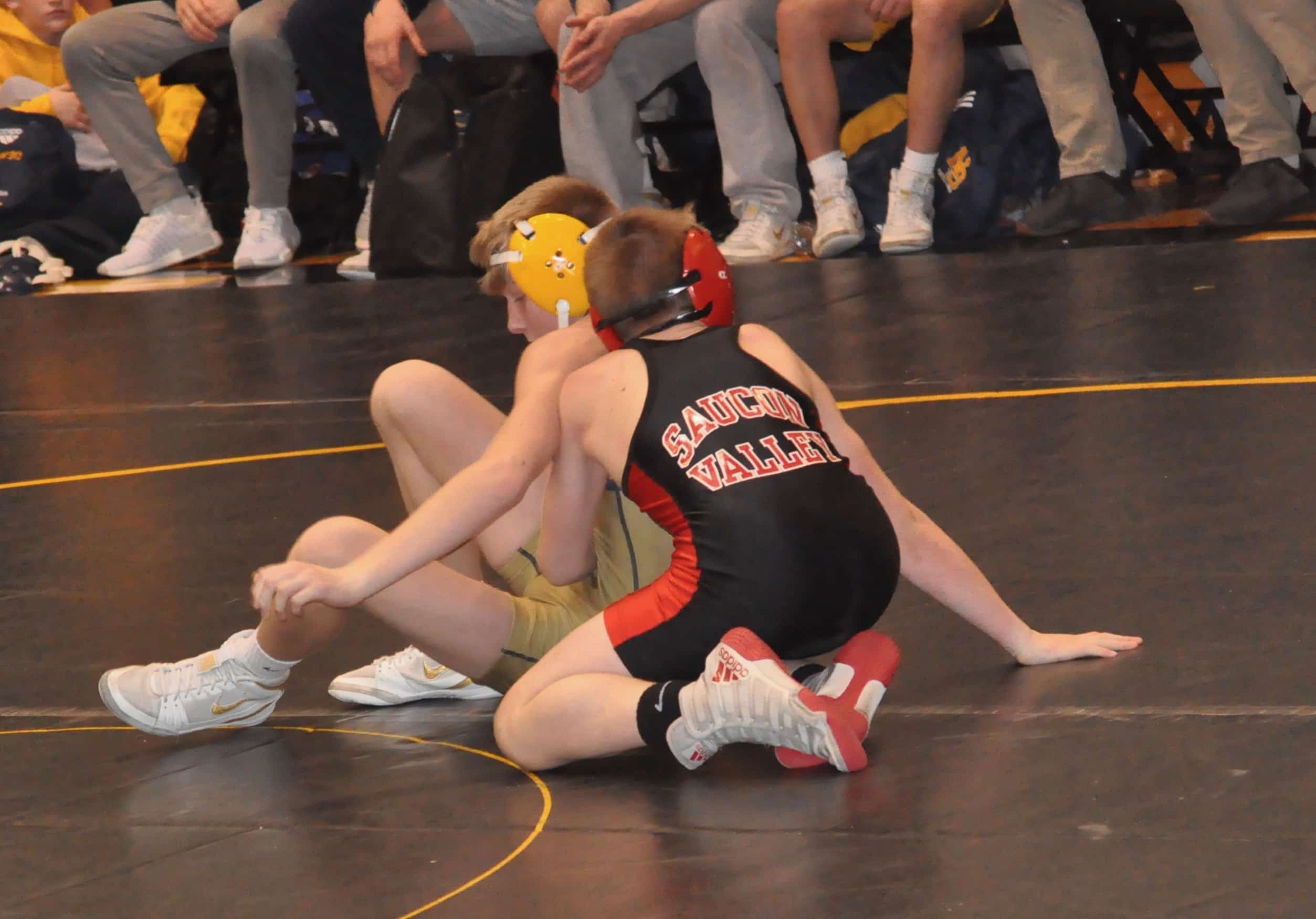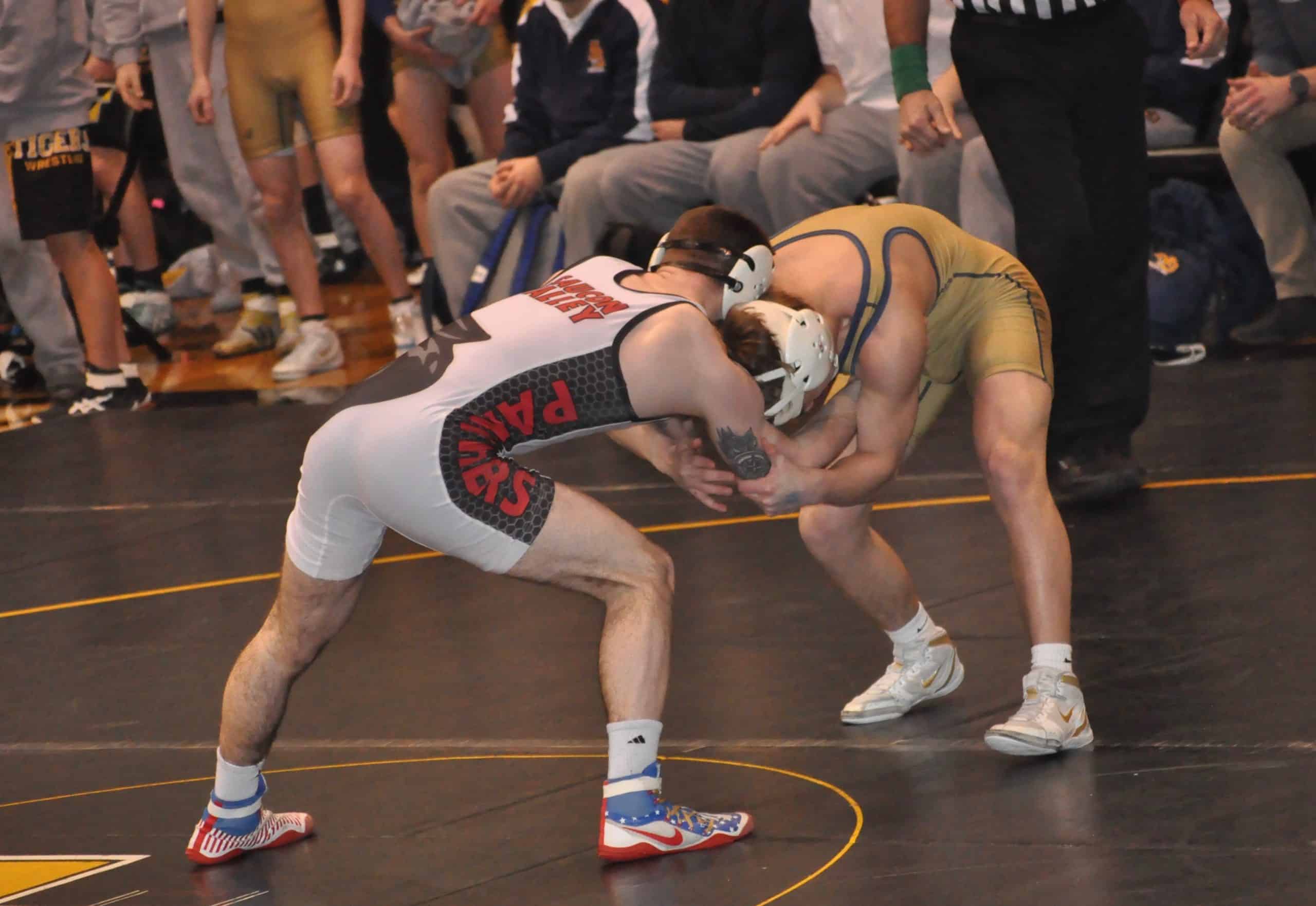 Cael Markle (113) and Notre Dame’s Morello did have a very competitive scrap that was decided with Morello’s fall in overtime, but it didn’t matter from a team perspective. When all the blood, sweat and tears were wiped away, the scoreboard read 36-35 in favor of the Panthers. With a gutsy performance, Saucon Valley secured their fourth District XI team title in a row.