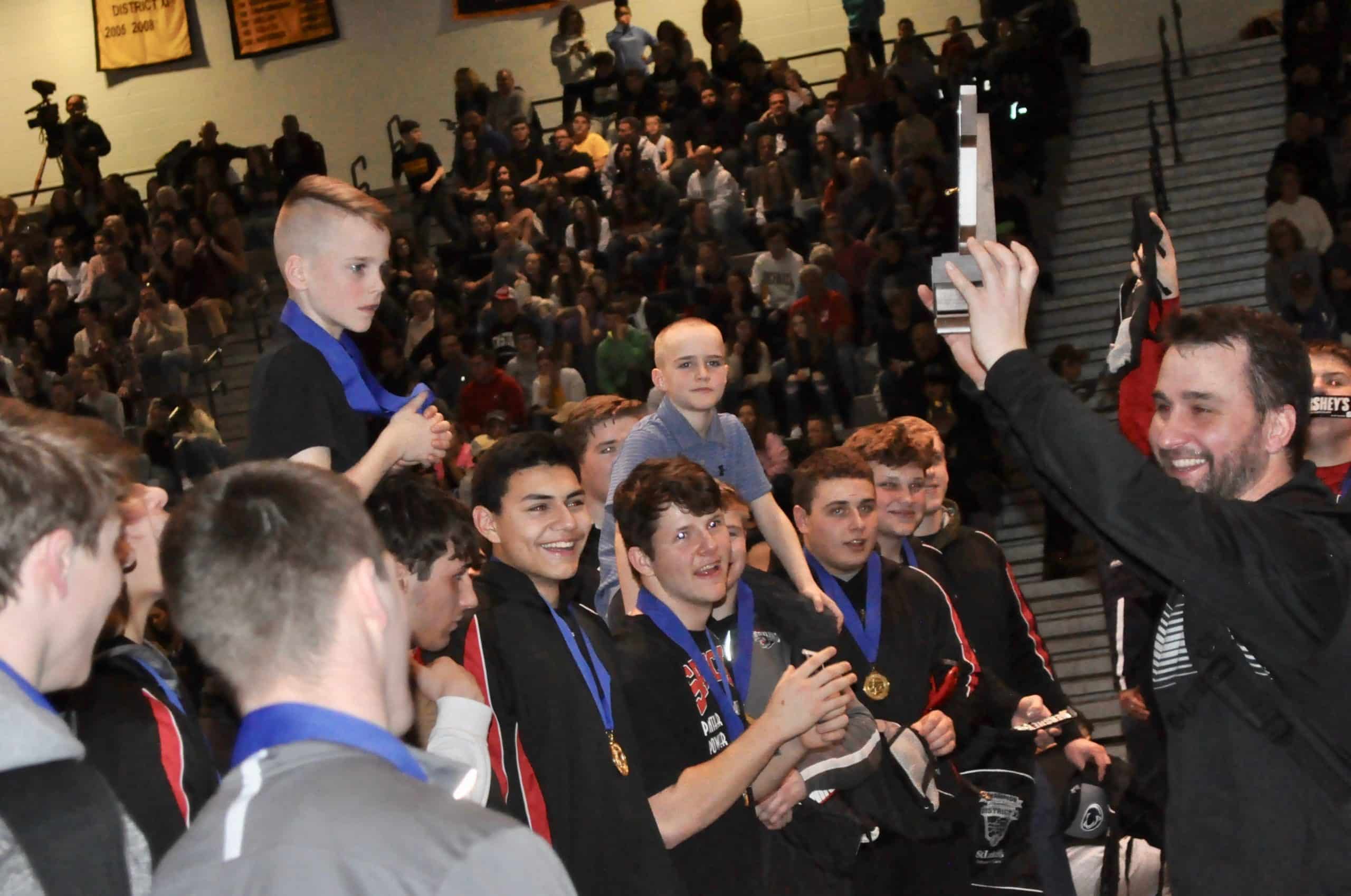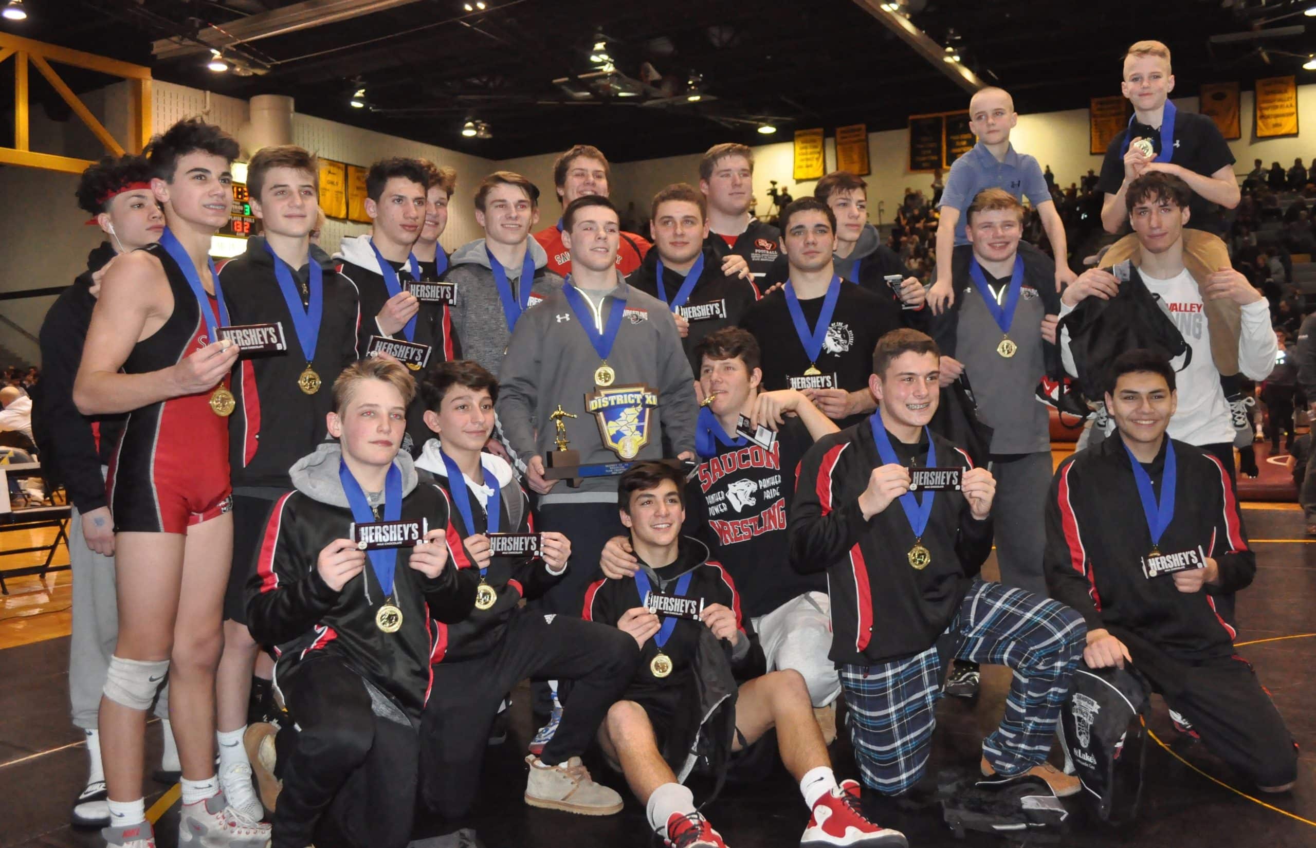 Saucon Valley wrestling has done it again. Five days after winning their seventh straight Colonial League championship, the Panthers willed their way to a fourth consecutive District XI Team title. The homegrown Saucon Valley Panthers hung together and denied borderless Notre Dame’s assembled group of all-stars the 2019 District XI championship trophy.
