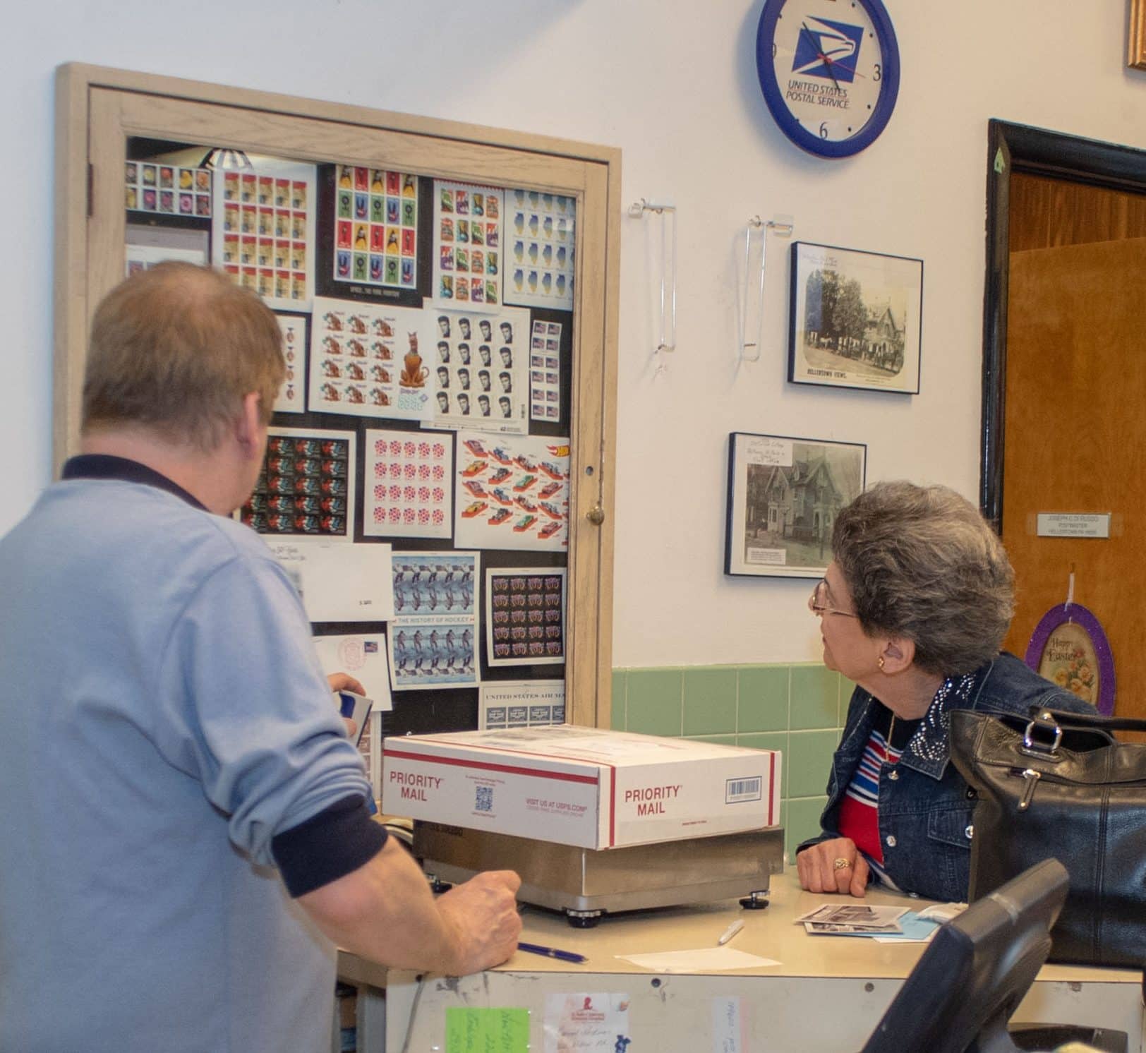 Some things never change. Choosing a stamp design is still a time-honored tradition at the Hellertown Post Office.