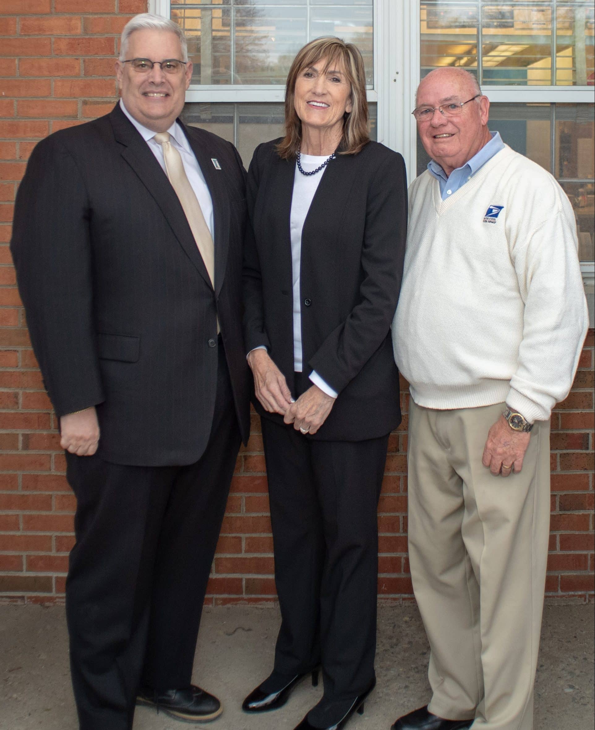 From left, Hellertown mayor David Heintzelman, USPS district manager for the Central Pennsylvania district Deb Gless, and former Hellertown postmaster Fran Ehret.