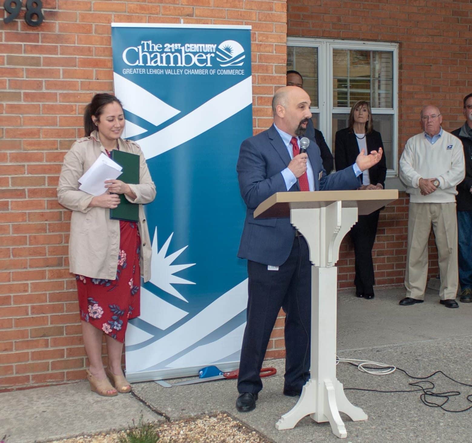 Hellertown mayor David Heintzelman speaks at the ribbon-cutting.