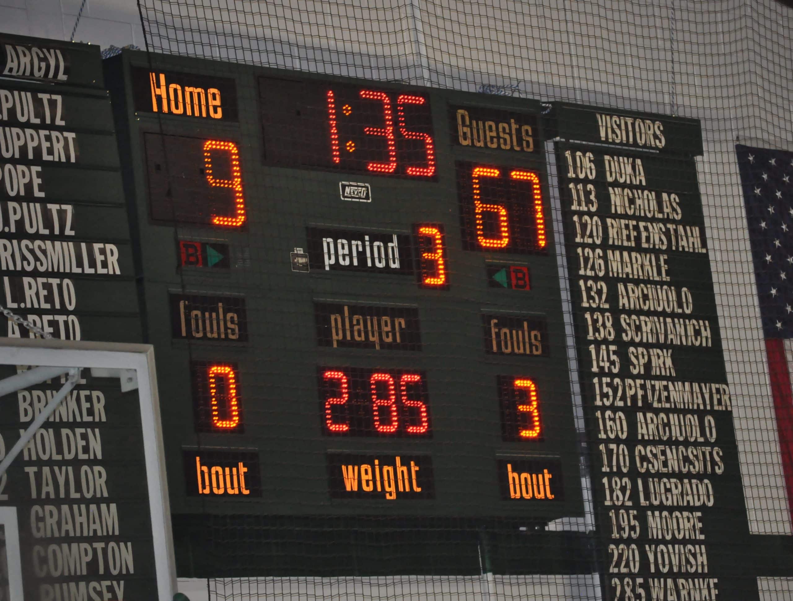 106- George Pultz So., PA, dec. Ermal Duka Jr., SV, 3-0.