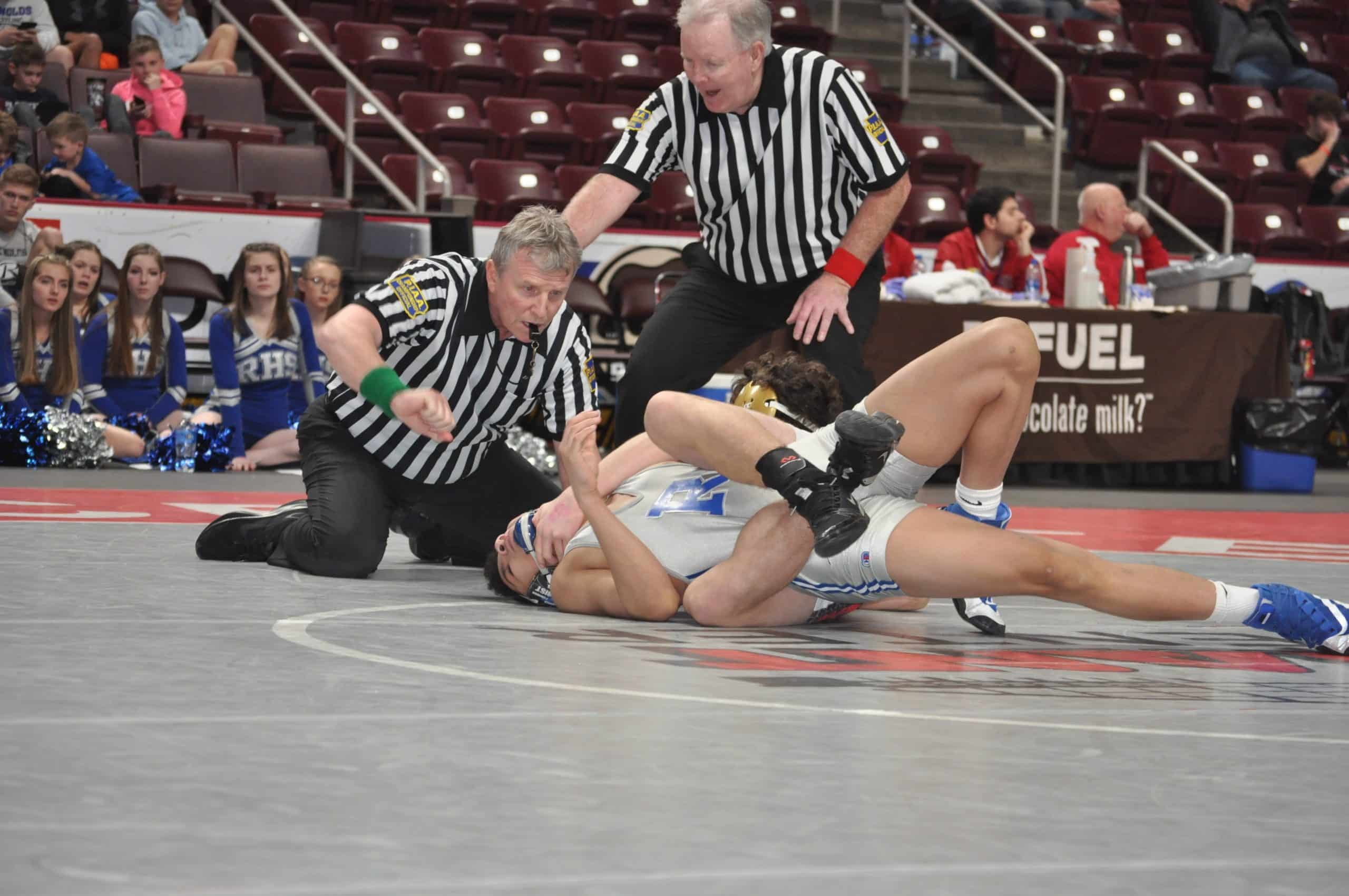 It was playing out to be an old-fashioned Friday night fight inside the Hershey Giant Center when the Saucon Valley Panthers squared off against the Reynolds Raiders. Reynolds has won the past three PIAA team titles at Hershey and was surely looking for their fourth. Saucon Valley was banking on taking down the champ with a break-through moment. The Raiders were able to advance to the semis with a 47-20 whoopin’ over Forest Hills. Saucon entered the semifinals by way of beating the Burrell Buccaneers. With two powerful programs staring each other down, neither team could ill-afford to get caught peeking ahead toward tomorrow’s championship final.