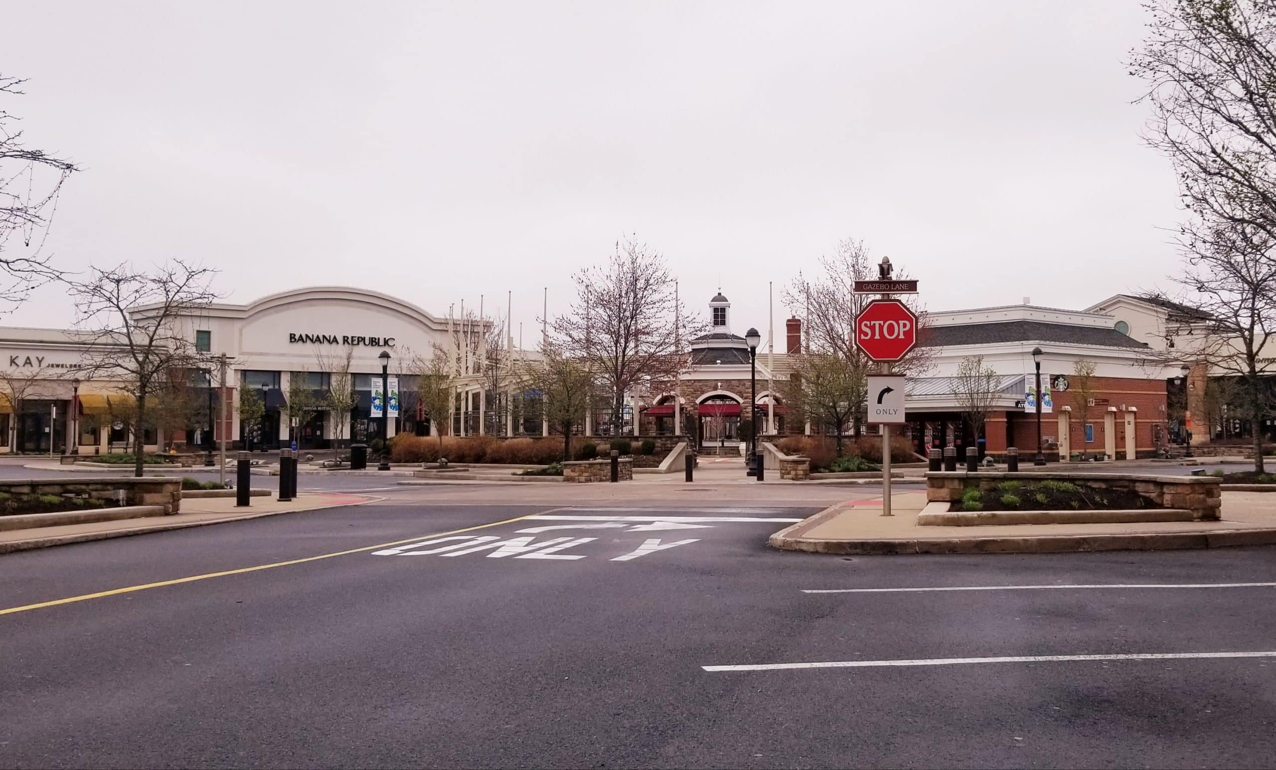 There was plenty of parking near and around Town Square at the Promenade Shops at Saucon Valley on a weekend afternoon in late March. Unfortunately there were few businesses open due to the COVID-19 pandemic.