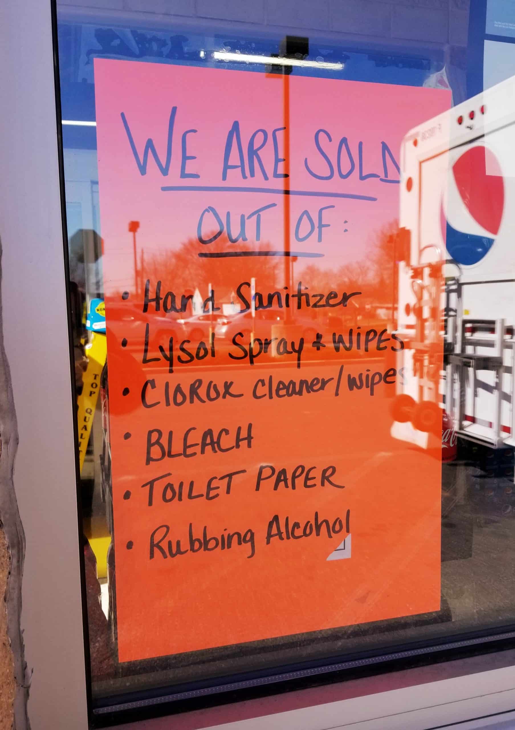 Dollar General in Fountain Hill alerted customers to the fact that it was out of many of the items that were panic-bought during the early days of the pandemic: hand sanitizer, disinfectant spray, wipes, bleach, rubbing alcohol and toilet paper.