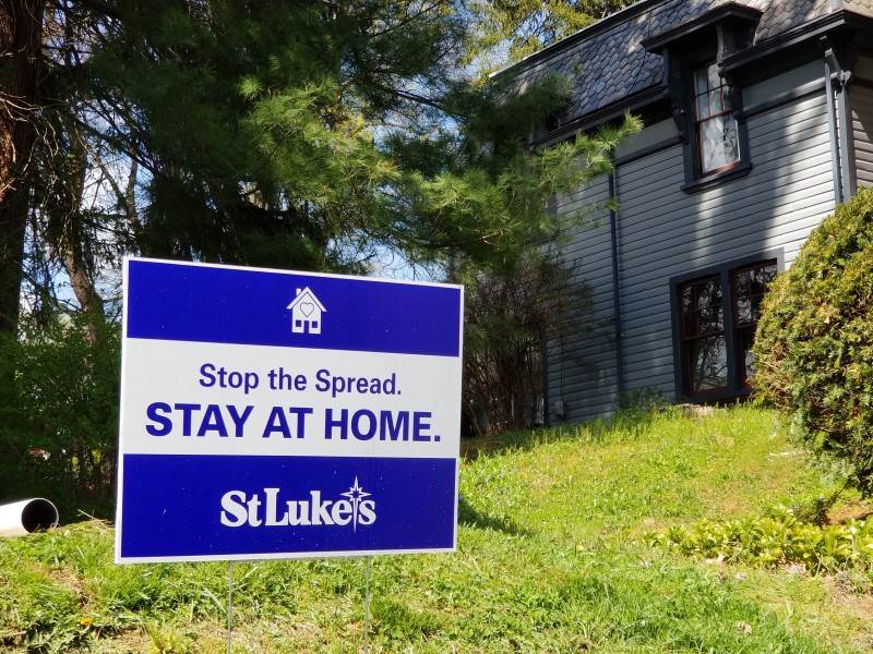 A St. Luke’s University Health Network yard sign displayed along Delaware Avenue in Fountain Hill reminds area residents to do their part to help stop the spread of the novel coronavirus by staying at home.