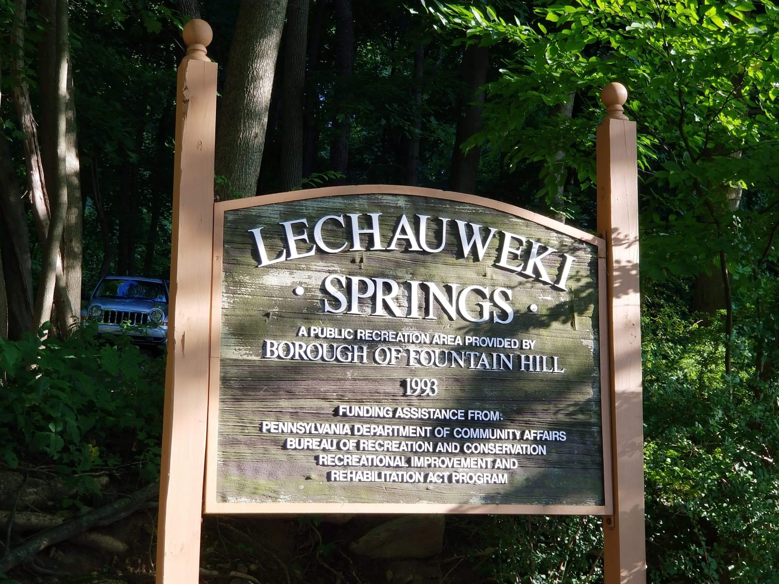 Today, Lechauweki Springs Park is a peaceful retreat from the hustle and bustle of nearby Fountain Hill and Bethlehem, in which tall trees form a lush canopy that can lower the air temperature by as much as 5 degrees on a hot summer’s day.