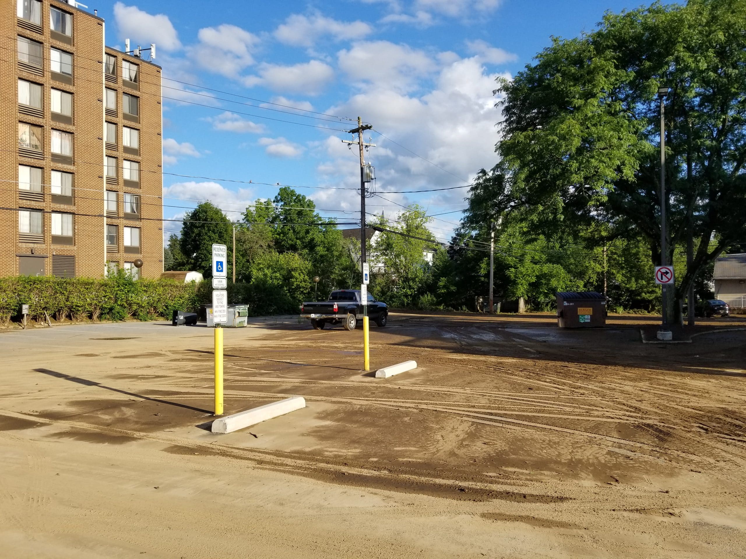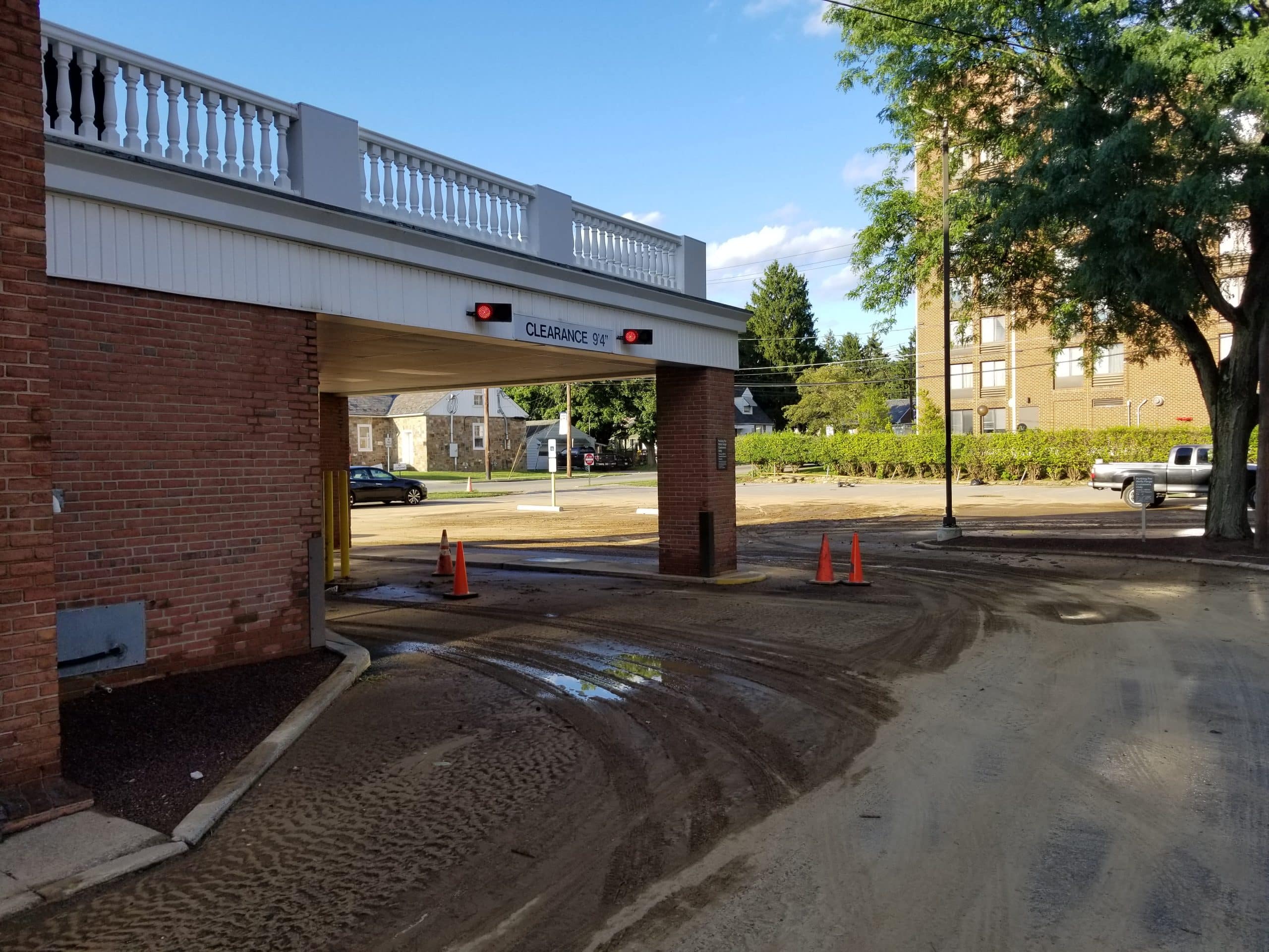 The muddy parking lot behind St. Paul UMC in Hellertown was a floodwater-filled lake just hours earlier.