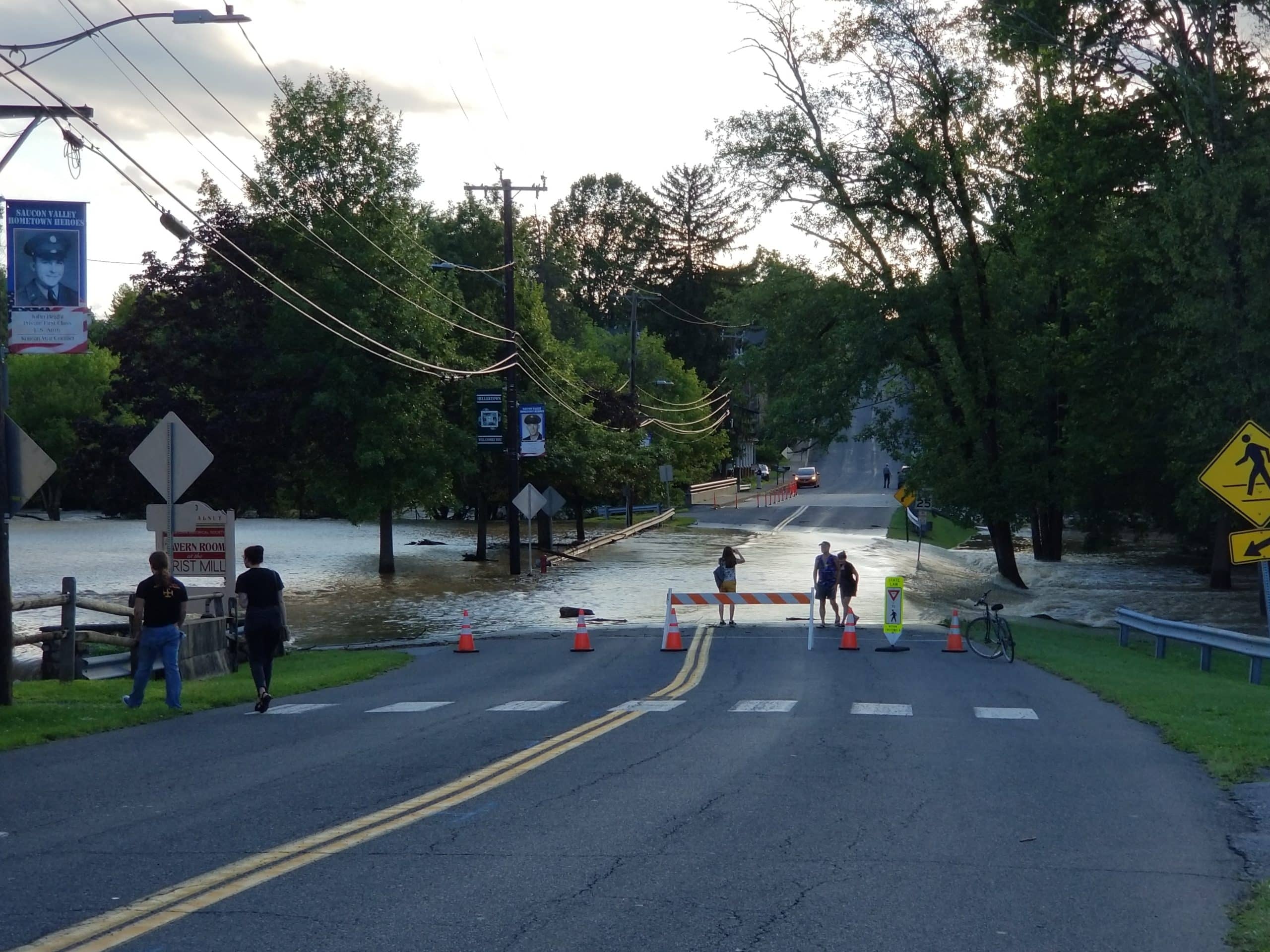 In Hellertown borough and Lower Saucon Township, some roads remained closed as of Tuesday evening, including Walnut Street between Front Street and the bridge. In that area, flood waters from the Saucon Creek combined with water from the grist mill pond to close the road and inundate the first floor of the historic mill.