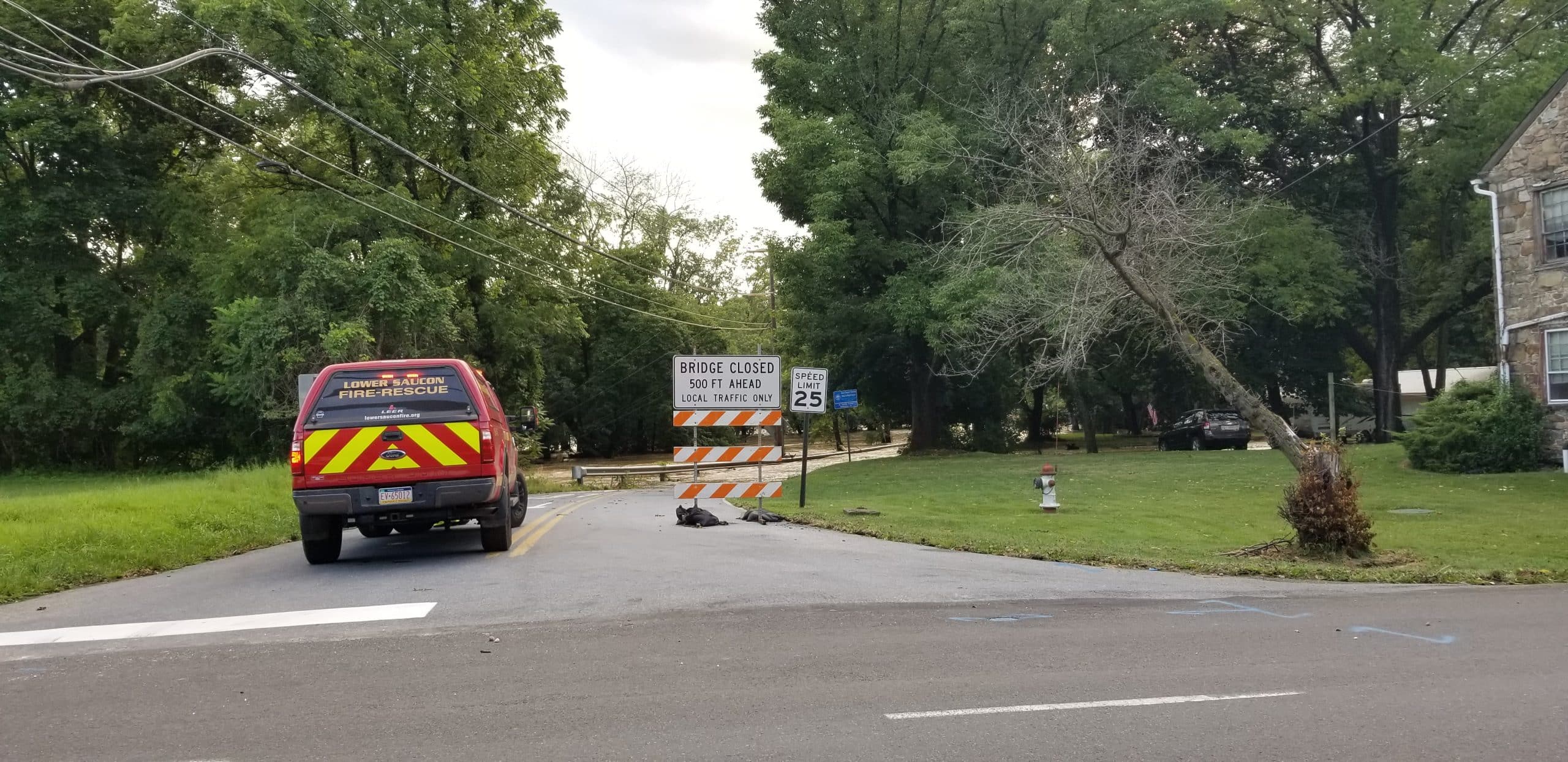 A volunteer fire department vehicle blocked access to Meadows Road at Rt. 412 in Lower Saucon Township after floodwaters submerged it Tuesday.