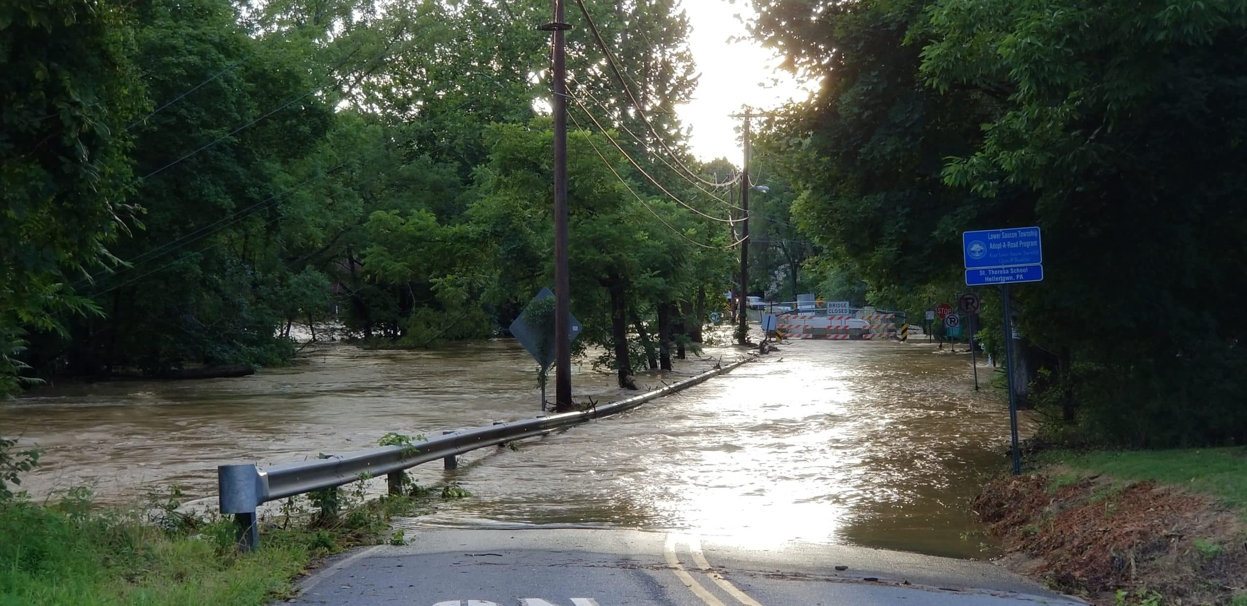 The story was similar along Meadows Road near Rt. 412, where flood waters surrounded the historic 1858 bridge across the creek. The bridge has been closed due to structural deficiencies for several years, and although preservationists want it saved, its owner–Northampton County–has yet to finalize a plan for the iconic span.