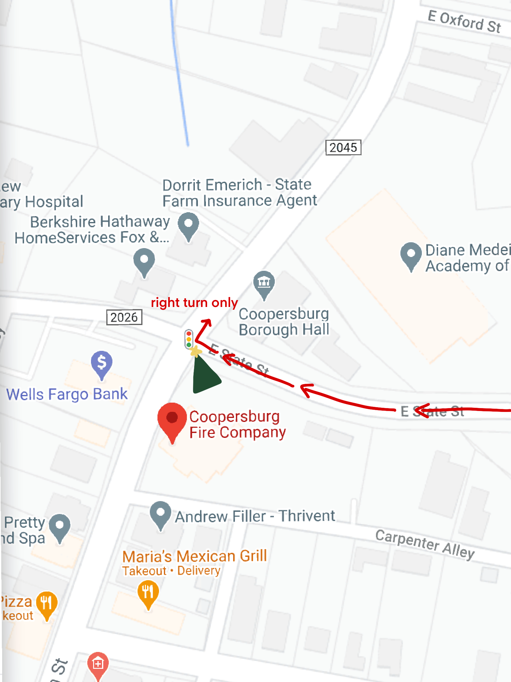 Motorists should approach the fire company by taking Rt. 309 south to East State Street to the fire company, which is at the corner of State and Main. The line of traffic will be directed to turn right at the light at that intersection.