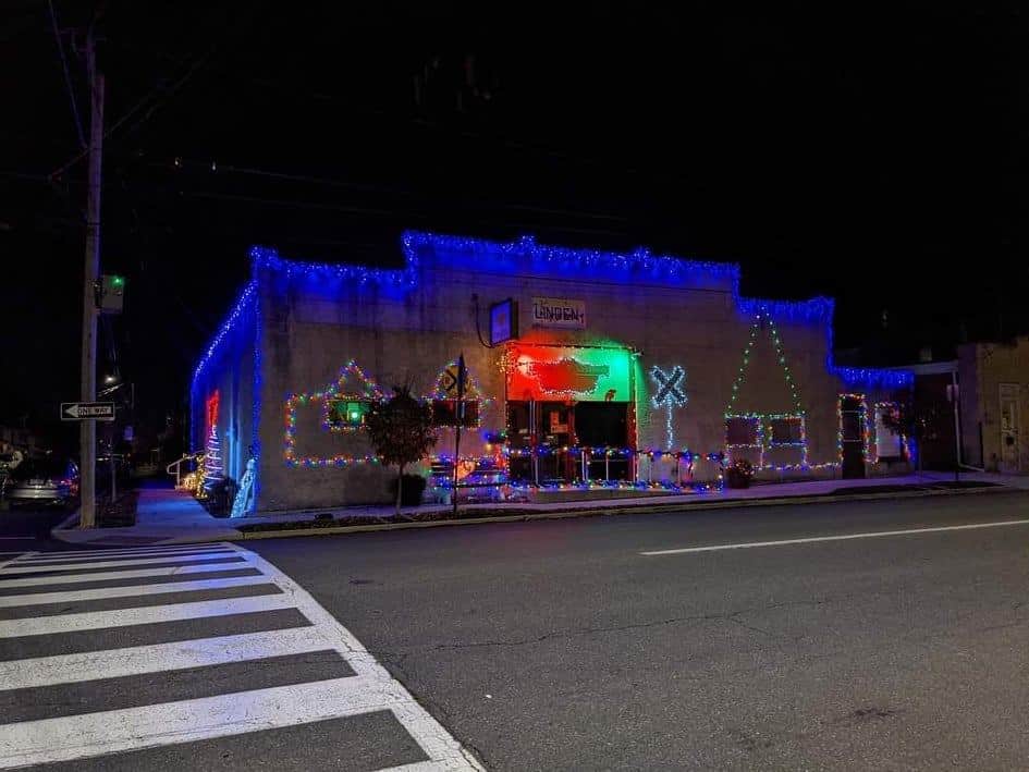 The Lehigh and Keystone Valley Model Railroad Museum at 705 Linden Street in Bethlehem is decked out with an array of multi-colored lights on the front and side of the building. It even has lights lining its “railroad crossing” signs.
