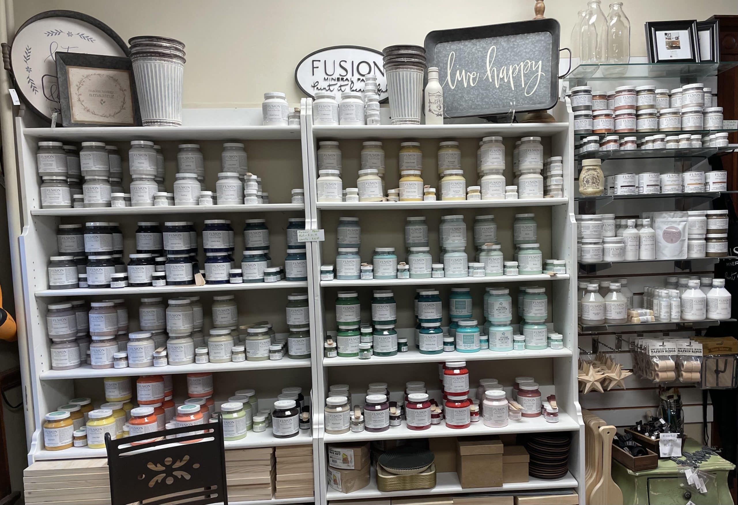All projects at Thistle & Co. are completed using Fusion paint and Iron Orchid Designs products. The studio prices the products into their rates, and customers are not required to purchase materials in order to participate in workshops.