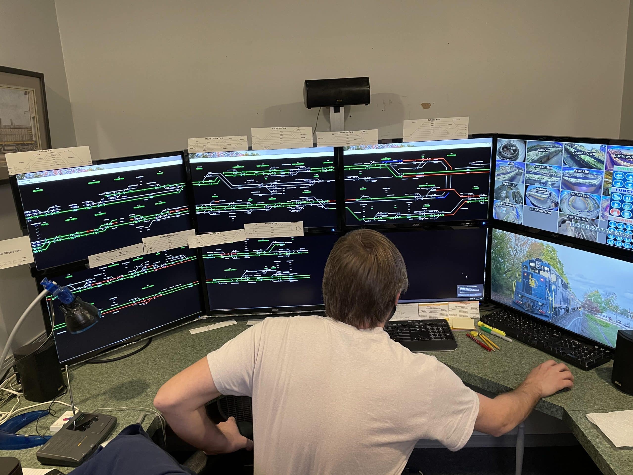 Marc Samuelson sits in the dispatch room at Lehigh & Keystone Valley Model Railroad Museum in Bethlehem. He helped assemble the museum’s dispatch system, which he modeled after real-life rail systems.