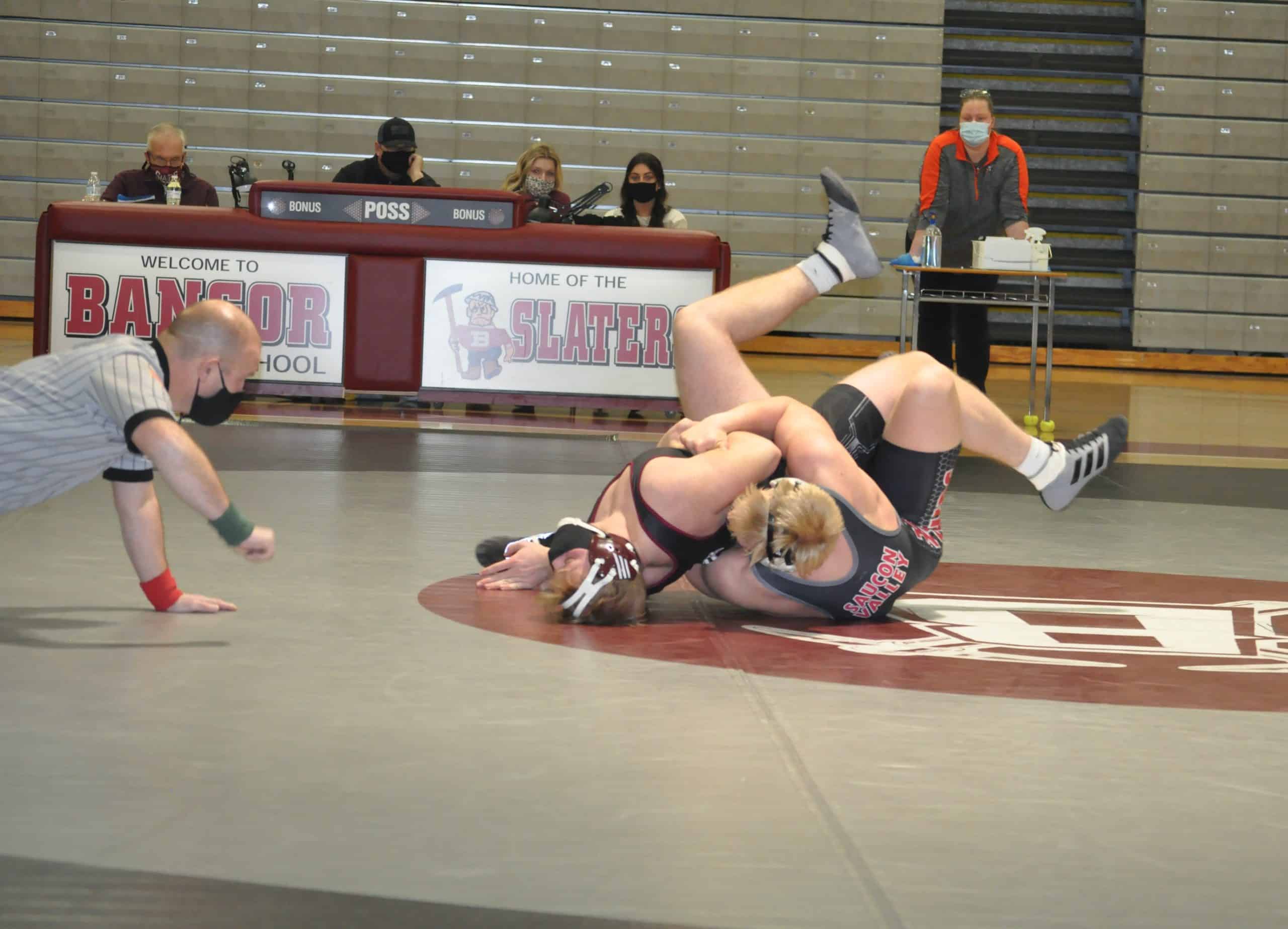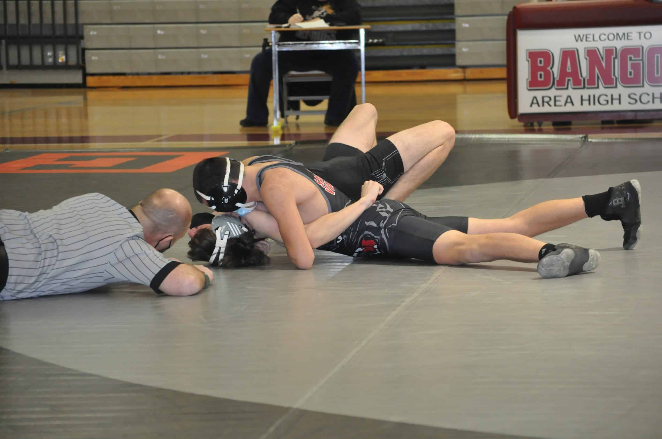 When the wrestling actually started, however, it was Bangor senior Allen Klaver who got things rolling. Klaver cut the Panthers 12-0 lead in half with a fall over Ermal Duka (120).