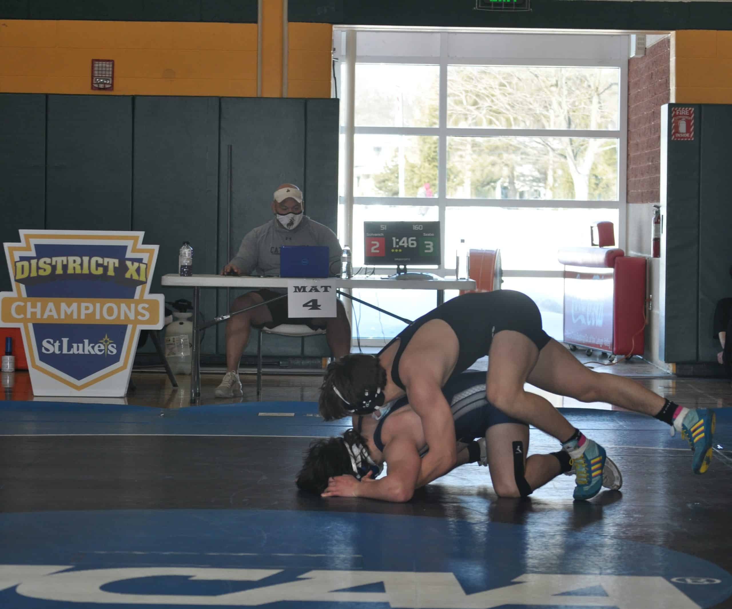 In the year of COVID-19 Chad Shirk and his Saucon Valley Panthers have successfully, yet precariously, navigated their way around the pandemic and into the District XI individual championships. Hosted by the Charles Chrin Center in Palmer Township and with doors closed to all spectators, the Panthers took to the mat for the opening day of the two-day tourney. On the other side of it all, the top two wrestlers in each of the thirteen weight classes will advance to the PIAA Southeast Regional next Saturday at Central Dauphin East High School.