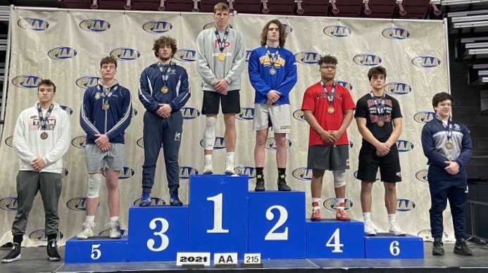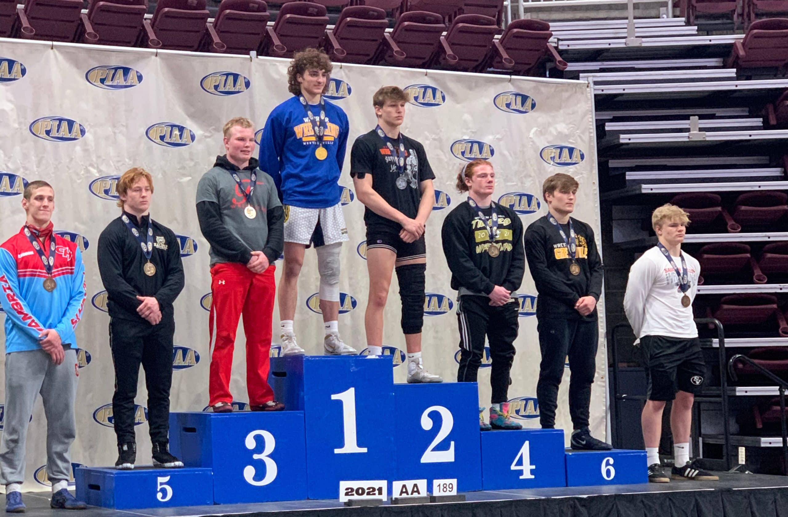 The Saucon Valley wrestling program was well-represented at the conclusion of the 2021 PIAA state wrestling championships. And, all three powerful Panthers that placed in the tiring tournament are underclassmen, with an awesome opportunity to get back up on the Pennsylvania podium again next season. Sophomore Jake Jones (172) along with juniors Ty Csencsits (189) and Dante Mahaffey (215) each ran the COVID era wrestling gauntlet to claim their respective medals in the 2021 PIAA state wrestling championships on Friday at the Hershey Giant Center.