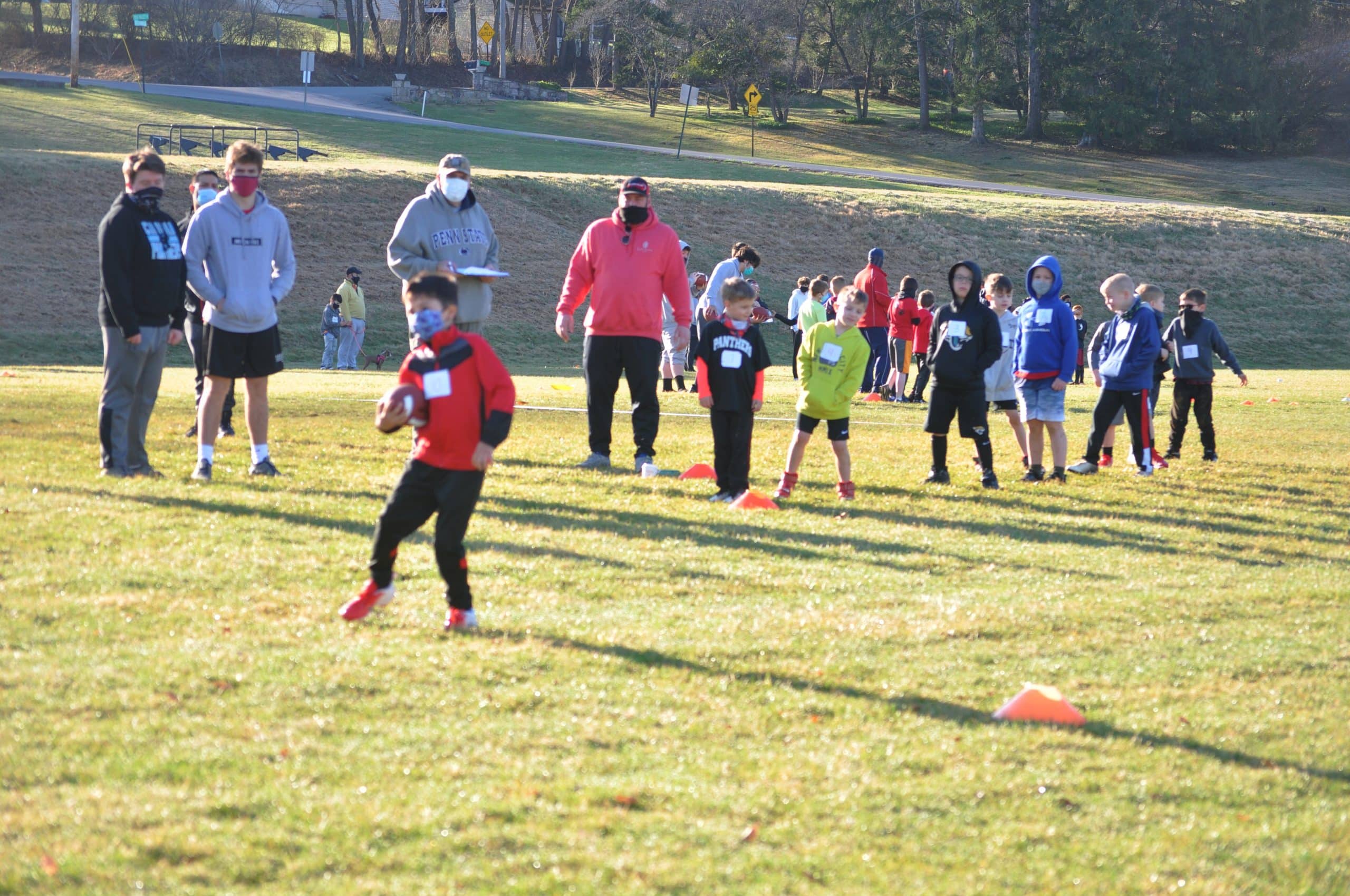 Once the individual evaluations are deciphered, the players will be divided into twelve competitive teams that will comprise two divisions. The first division will consist of four teams made up from student-athletes in grades 1-3. The other eight teams in the second division will be selected out of the kids from grades 4-6. Most of the athletes are from Saucon Valley, but a few players from Salisbury, Southern Lehigh and Bethlehem also took part in the running, passing and catching skills evaluation process.