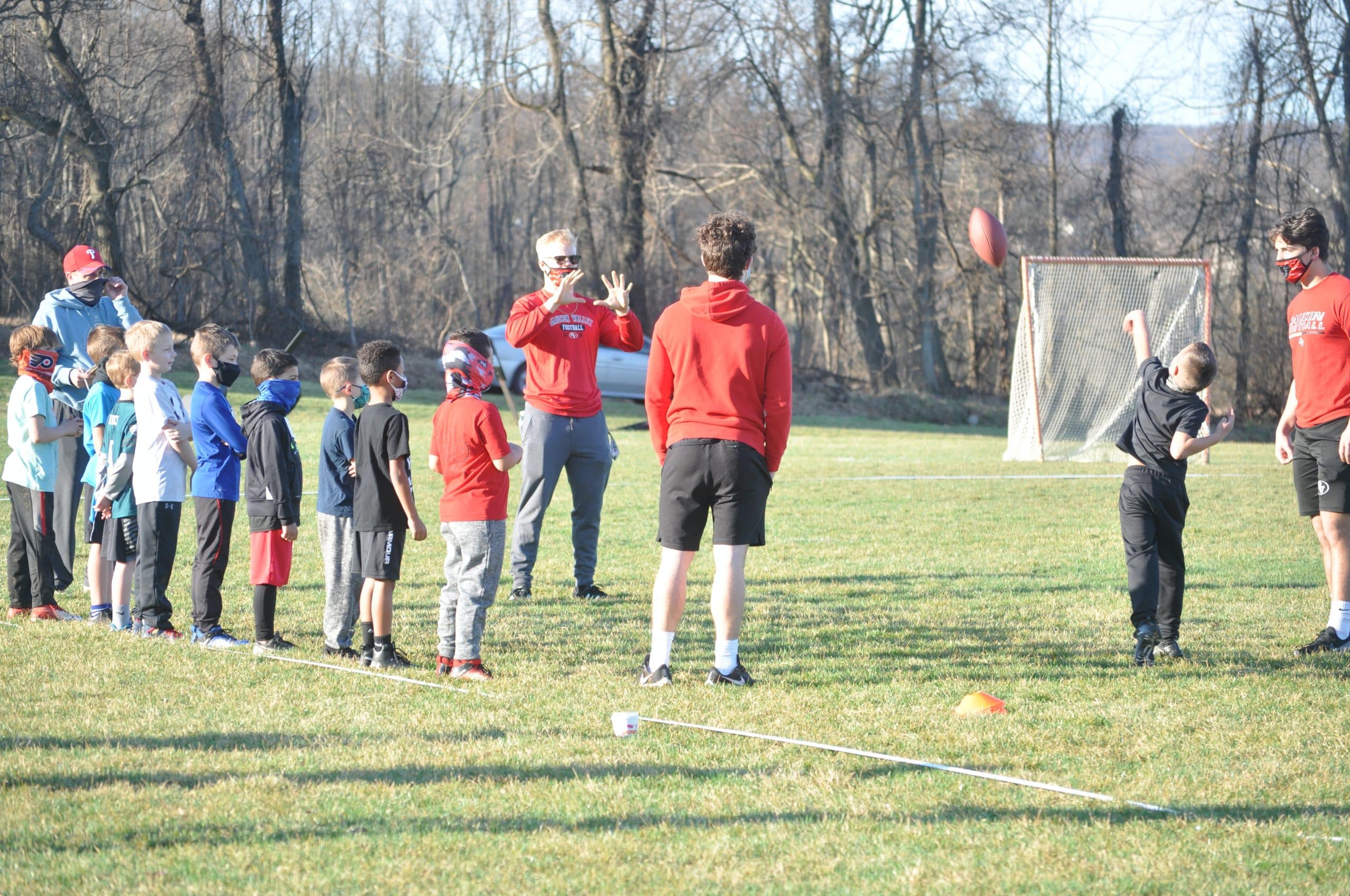 It wasn’t quite an NFL combine, but there were definitely some similarities. The Saucon Valley athletic fields were overrun this past Saturday morning by approximately 120 energetic youngsters in grades 1-6. Their purpose was to show off their football skills under the watchful eyes of the Saucon Valley youth football coaches. Saucon Valley Youth Sports with the help of Coach Brad Trembler and his Saucon Valley high school players are working together to sponsor a spring youth flag-football league.